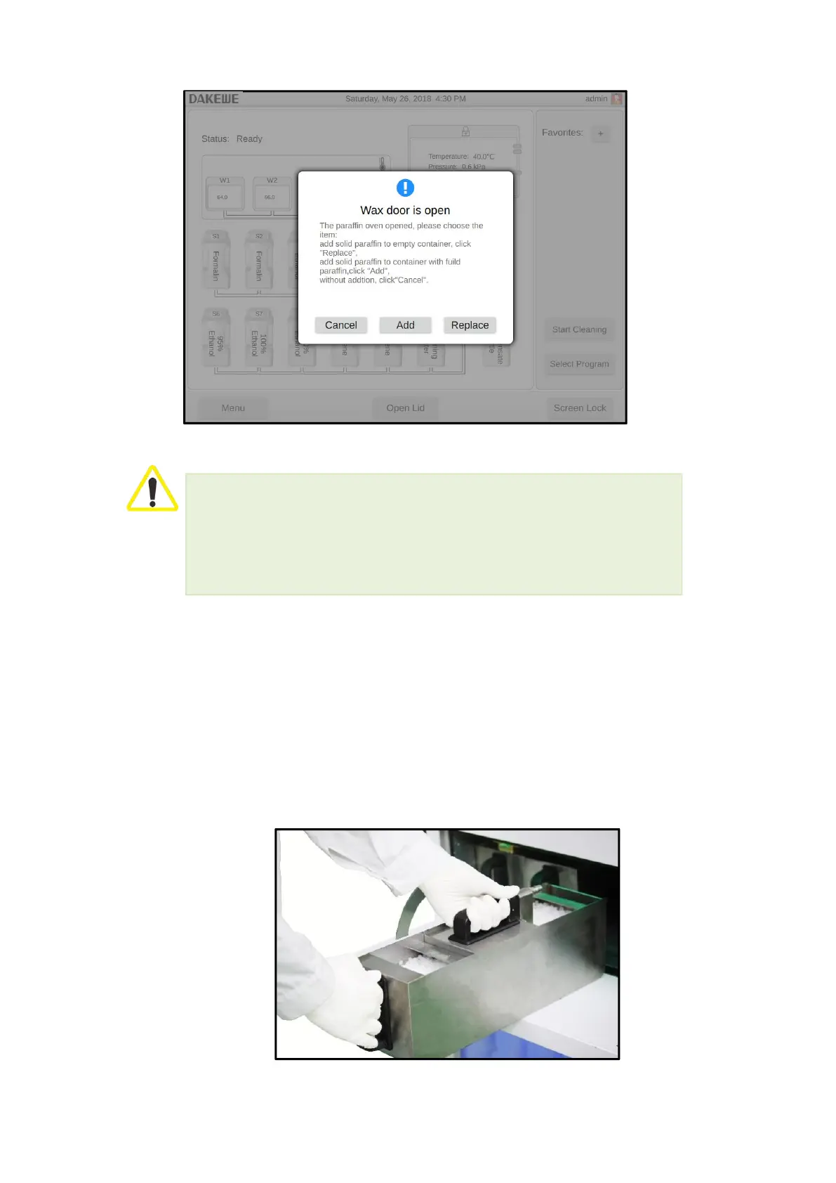 replacing or adding paraffin, be sure to wear protective clothing, goggles, gas masks,
