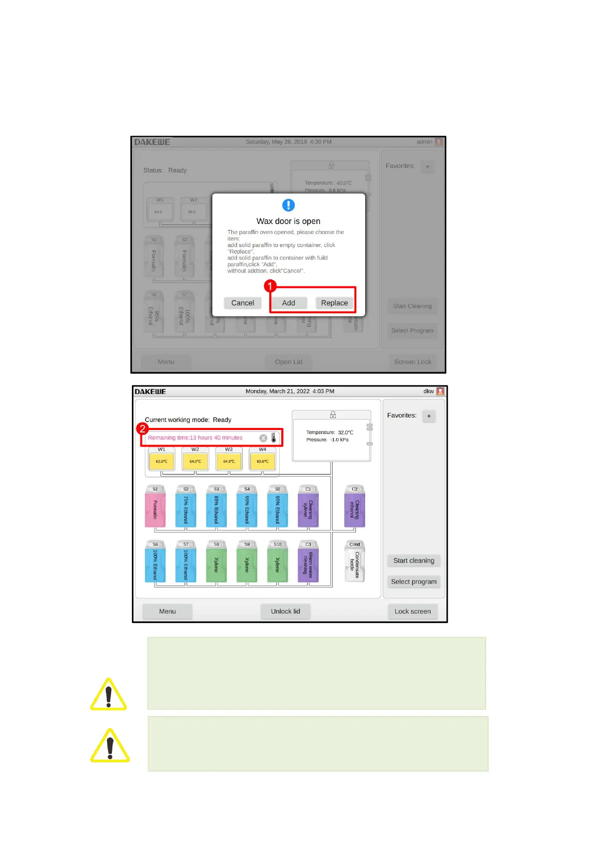 Click the “Paraffin Replacement” or “Paraffin Filling” in the system interface