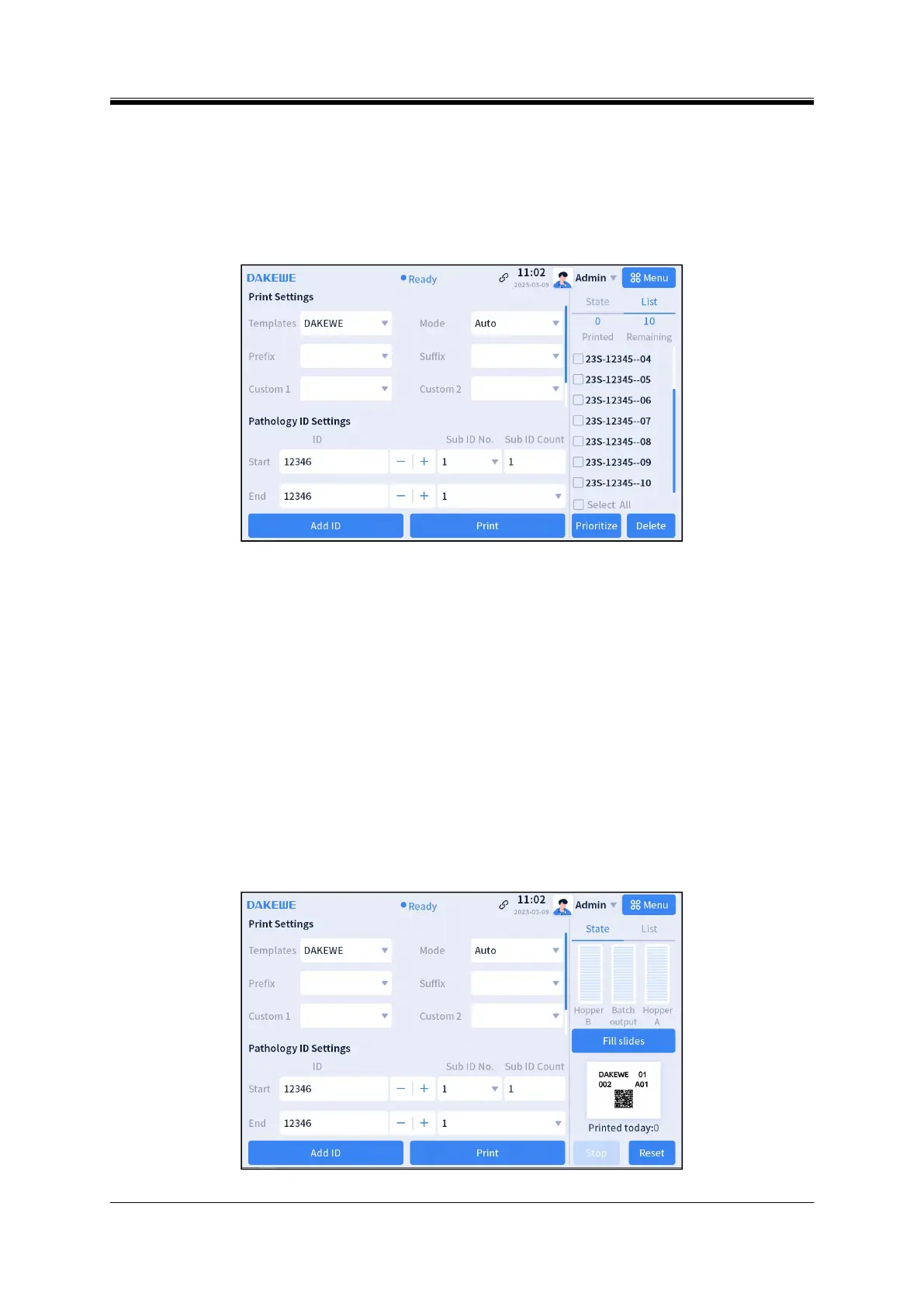 Print Jobs List (Figure 4-22): It displays the count of IDs printed and to be printed on that day and the