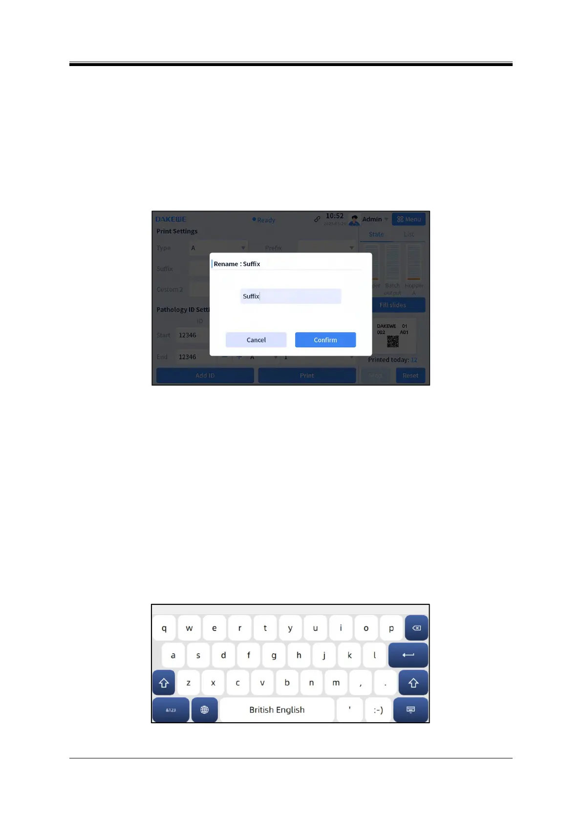 The Dakewe Slide Printer can use the virtual keyboard that comes with the software to input
