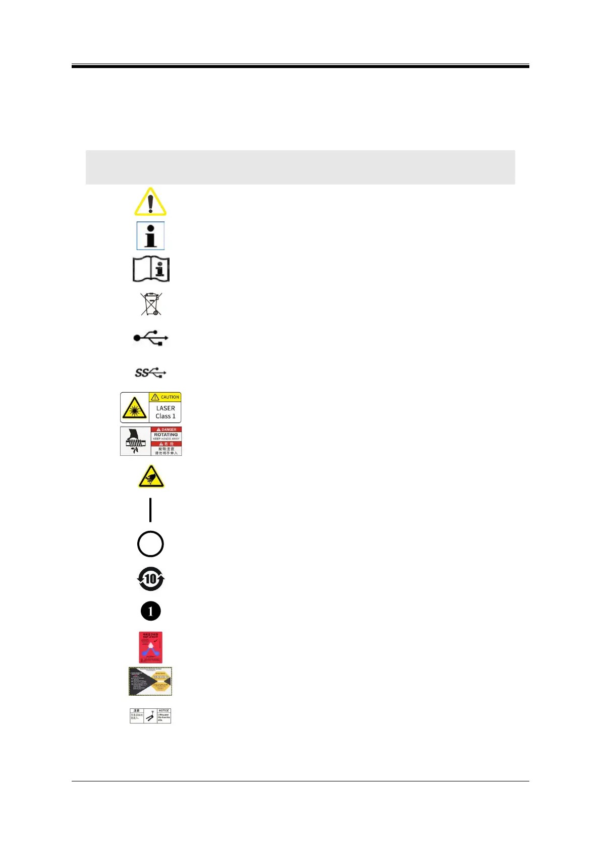 Laser warning marker: caution - class 1 laser radiation. See Annex 2 for