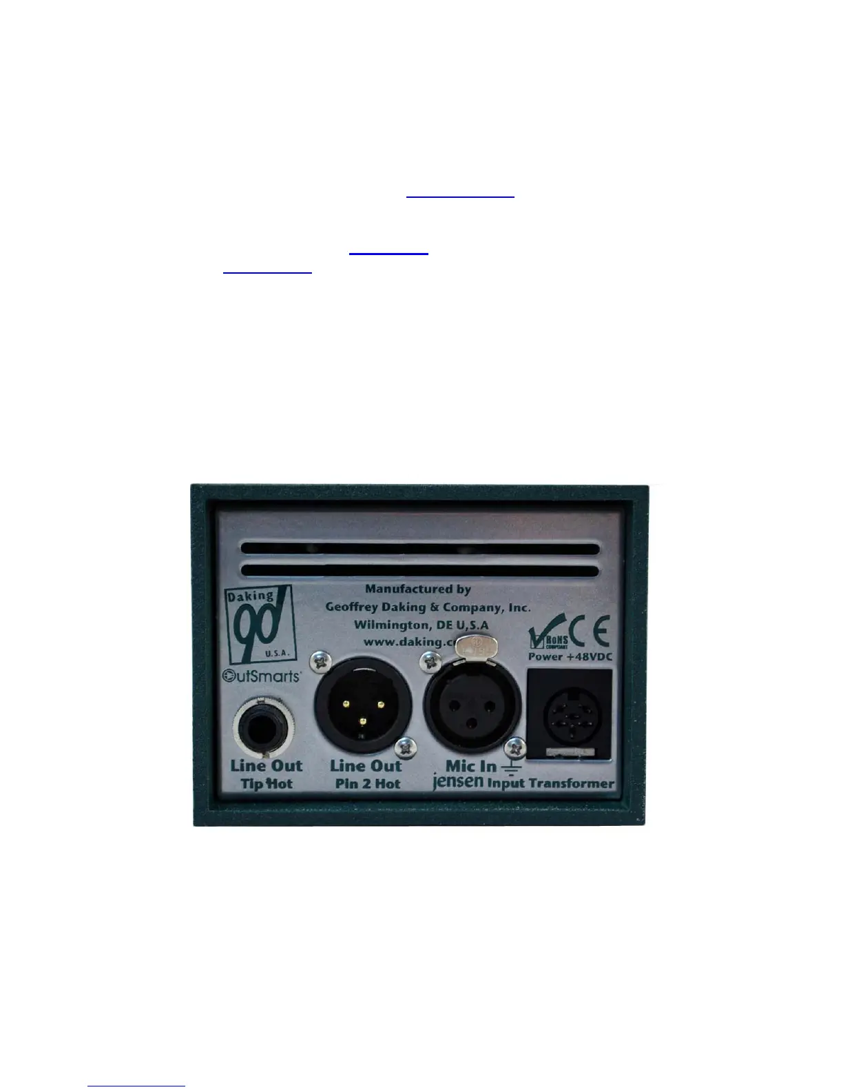 power, push in the +48 Button to engage phantom power. Patch out of the