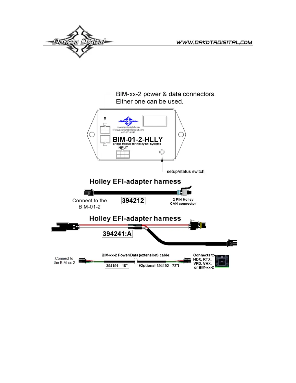 If the Dakota Digital Recording Equipment BIM doesn't light up, it could be due to several reasons: * The PWR wire may not have power. Ensure it's connected to a location with +12V key-on power. * There might be a grounding issue. Try connecting to a different ground location. * The power/data harness could be damaged. Inspect the harness and repair or replace it if necessary. * The module itself might be damaged, in which case it should be returned for service.