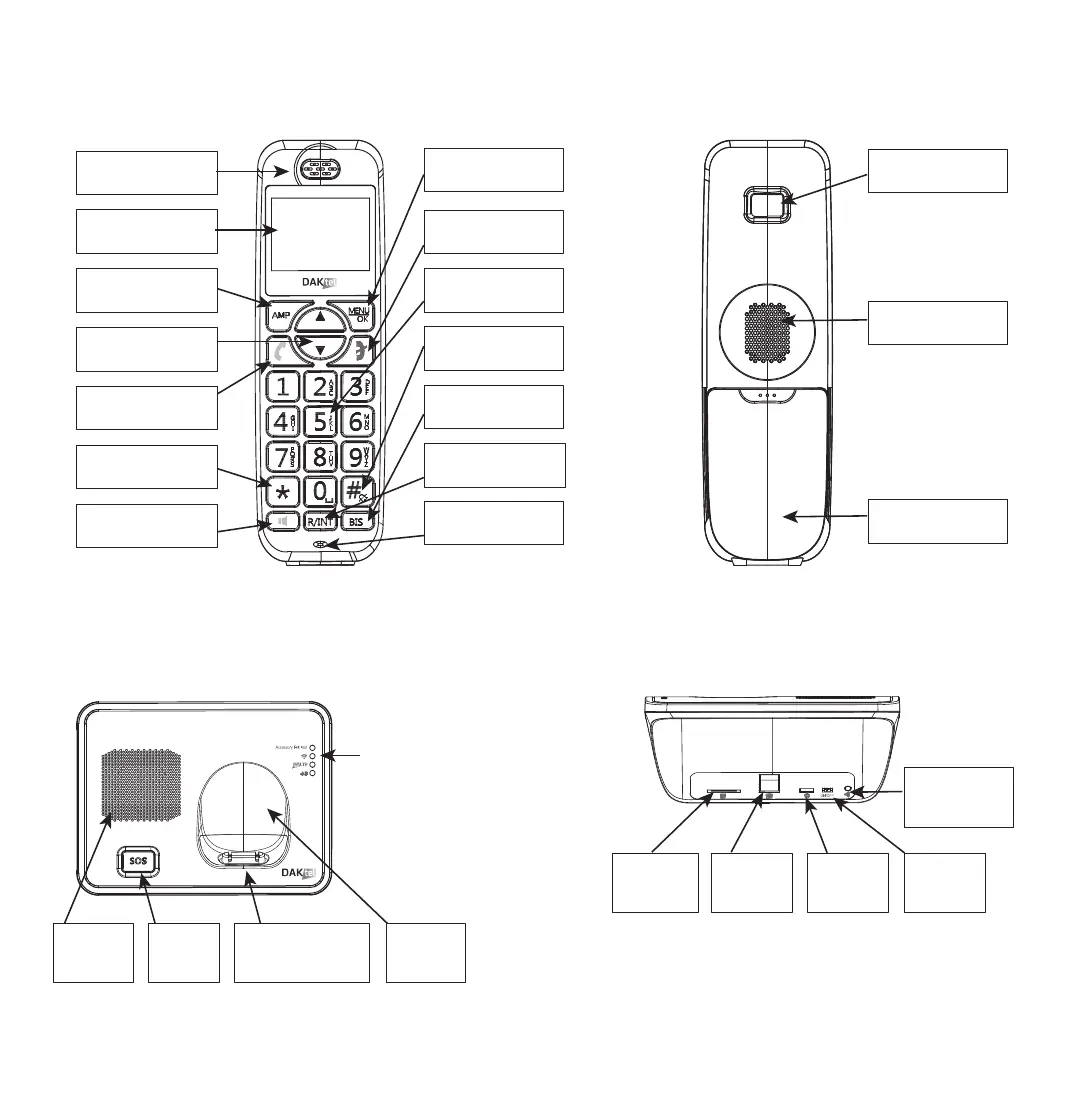 DAKtel DT-7X - Device Overviews and Controls; DECT Handset Overview; 4 G LTE; DECT Base Overview