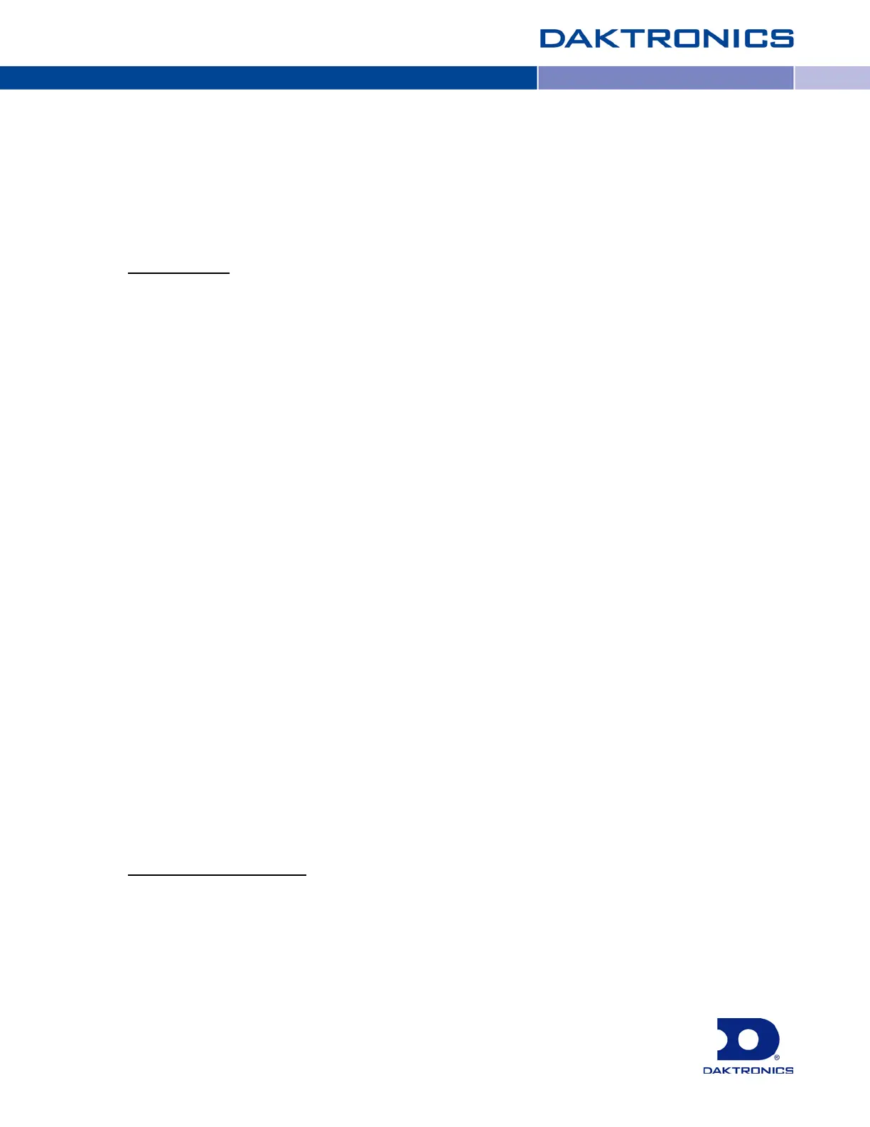 The limited warranty provided by Daktronics does not impose any duty or liability upon Daktronics for: