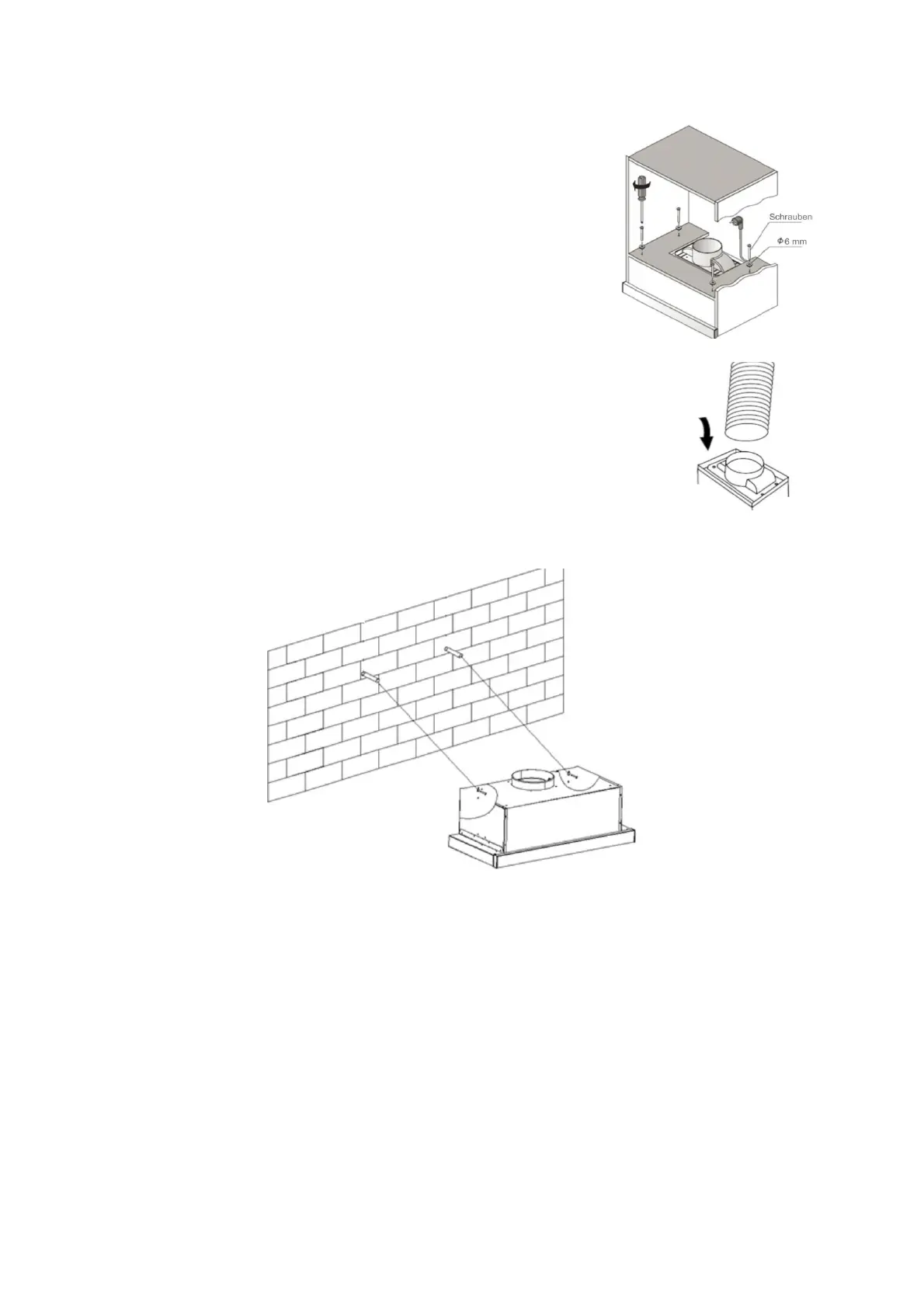 2. Przytrzymać okap nadkuchenny przy odpowiednich otworach i przykręcić