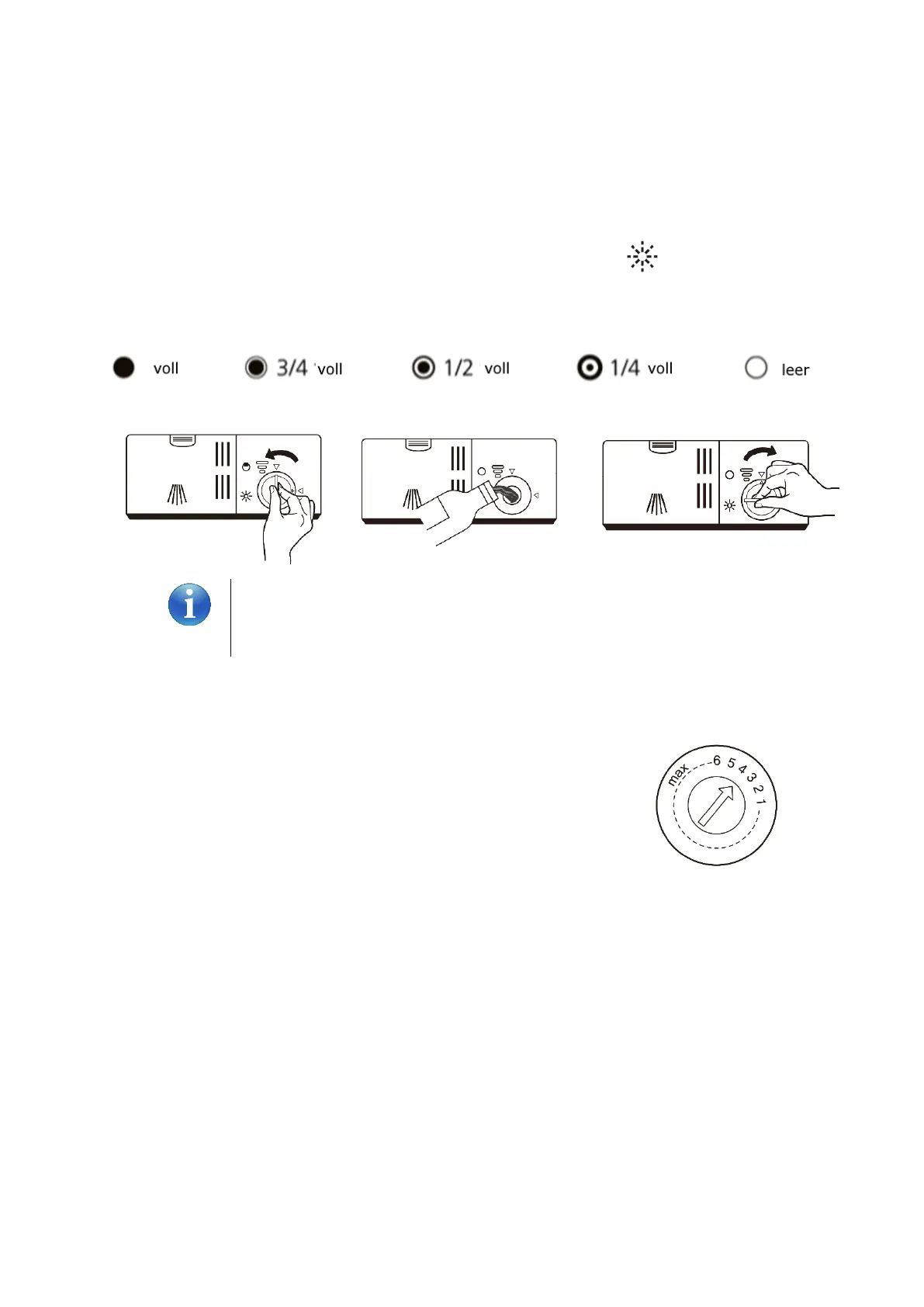 Der Klarspülbehälter hat sechs bzw. vier Einstellungen. Werks-