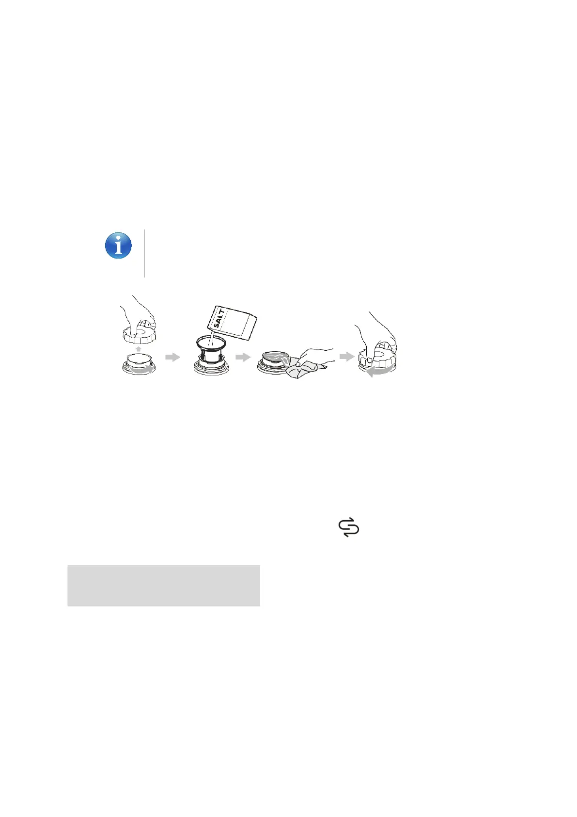 14. When using for the first time, fill the salt container with approximately 1 litre of