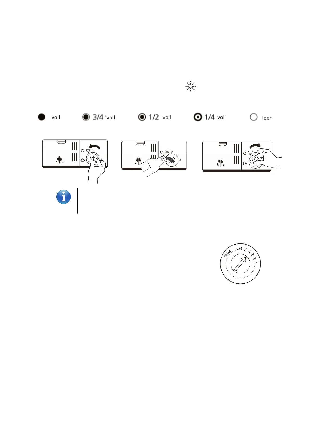 The rinsing agent container has six or four settings. Factory