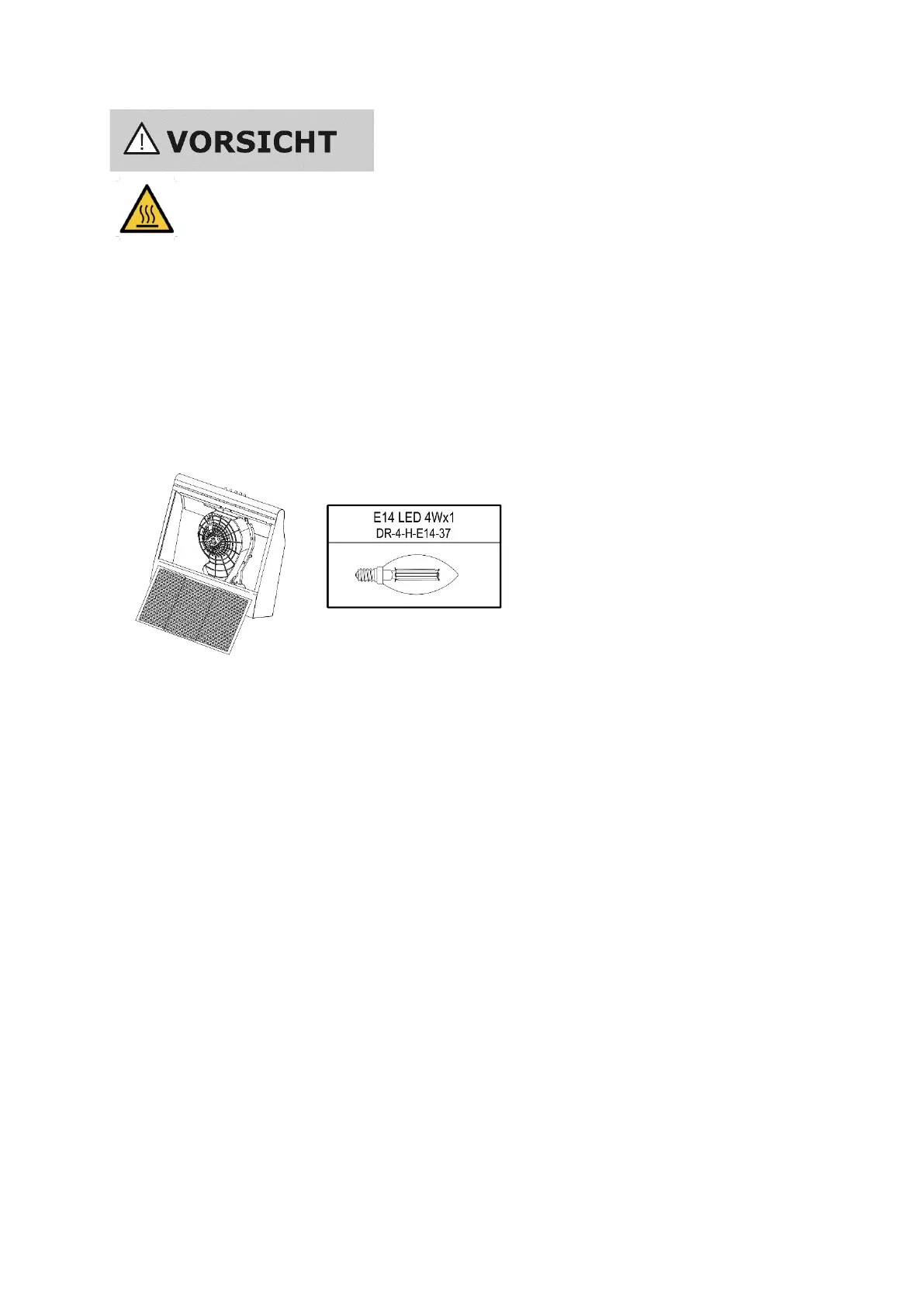 Das Leuchtmittel darf erst nach dem Abschalten des Gerätes und nach