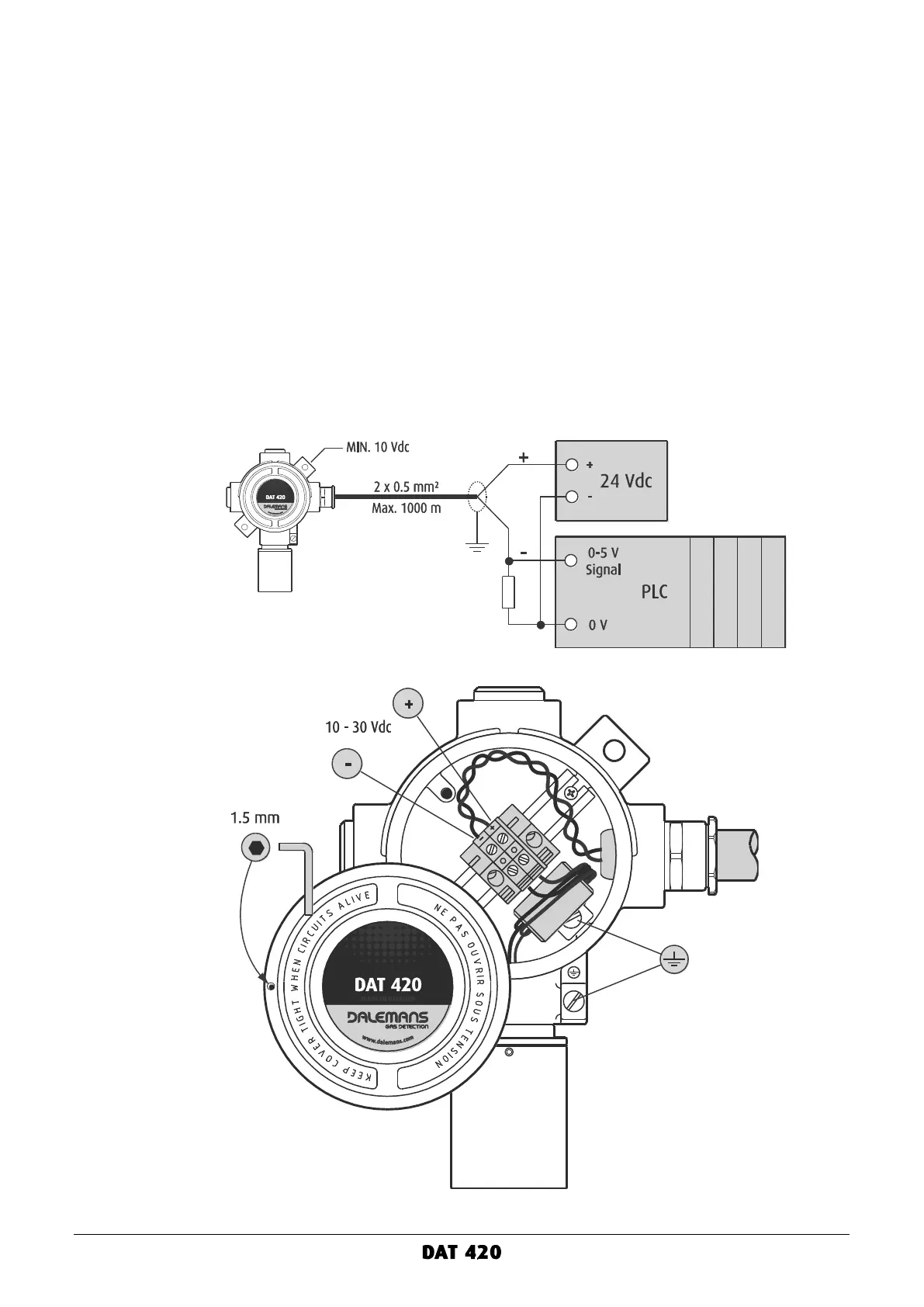 To connect the DAT 420 gas detector to a PLC: