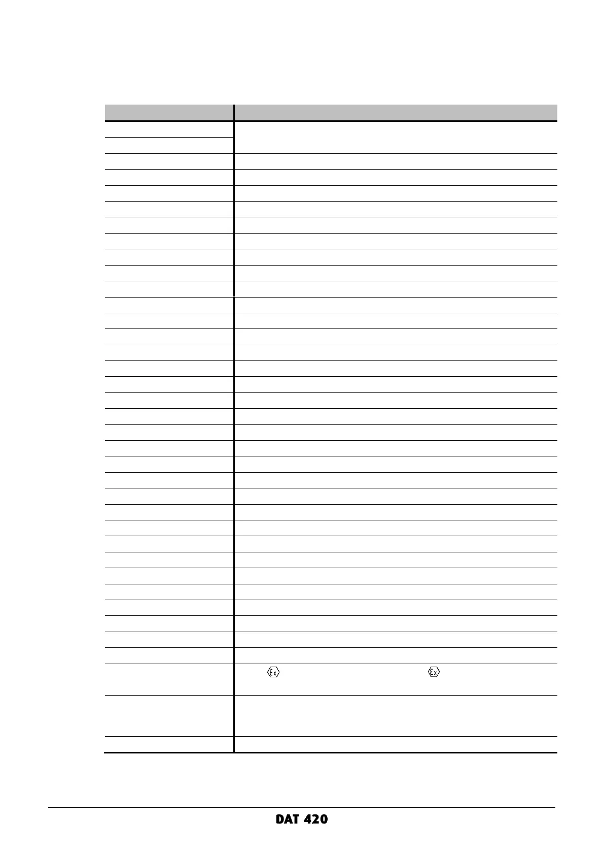 DALEMANS DAT 420 - TECHNICAL SPECIFICATIONS; DAT 420 Specifications Summary