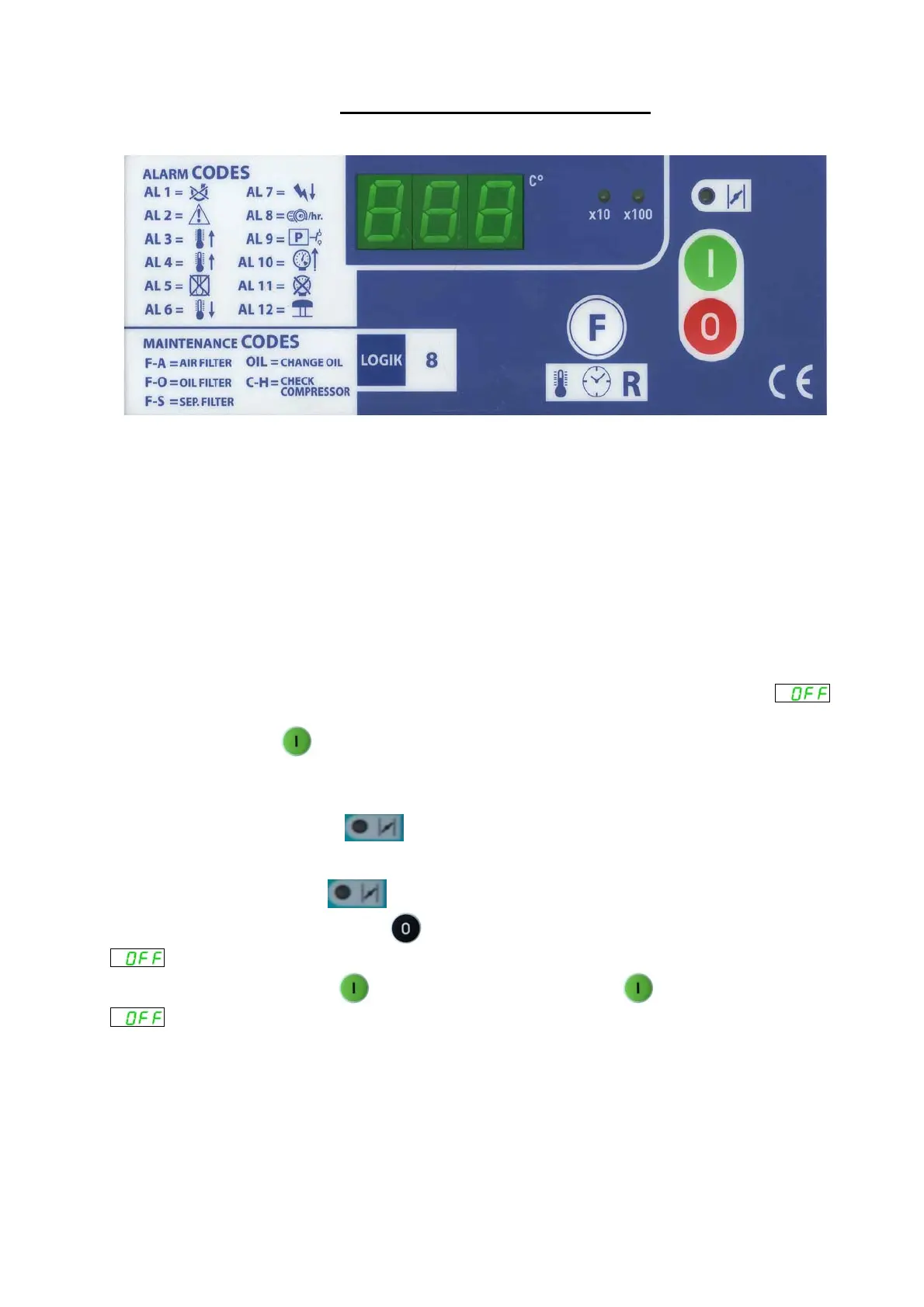 1 – При подаче электроэнергии компрессорной установке, на дисплее появляется надпись