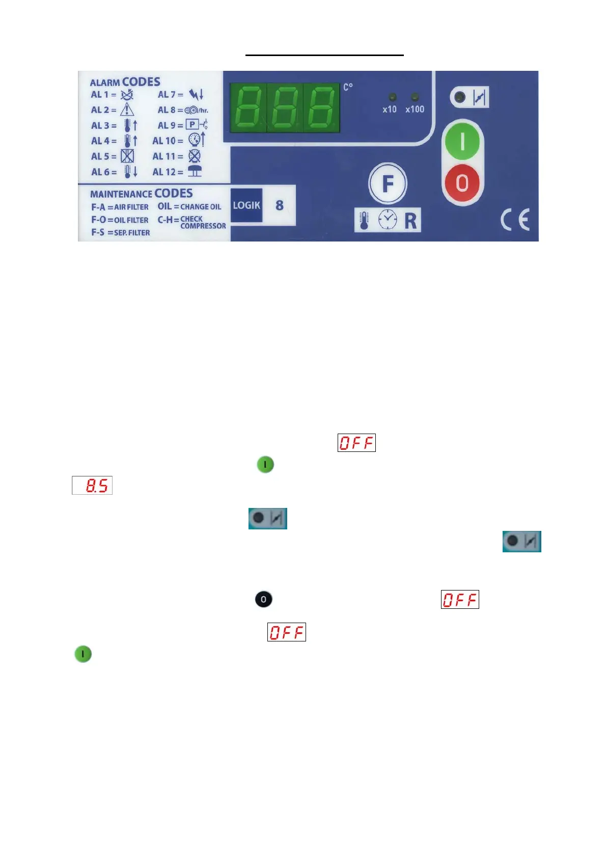 SÜRE SONUNDA “OFF” MESAJI SABİT HALE GELİR VE KOMPRESÖR DURUR. BU ANDAN İTİBAREN X10