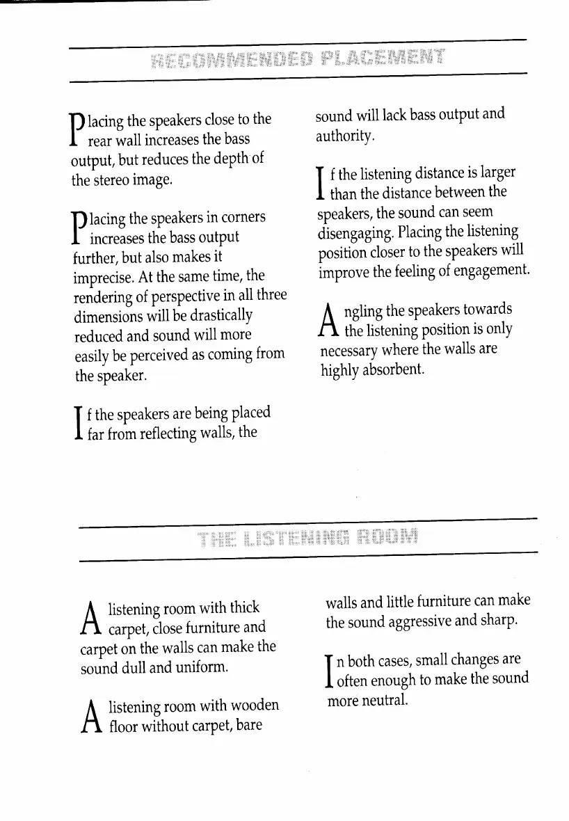 Dali 103 - Recommended Placement; Listening Room Acoustics