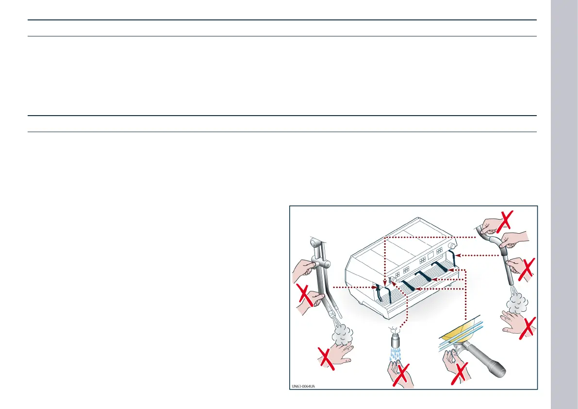 Risk of scalds and burns: when cleaning the hot water sprin-