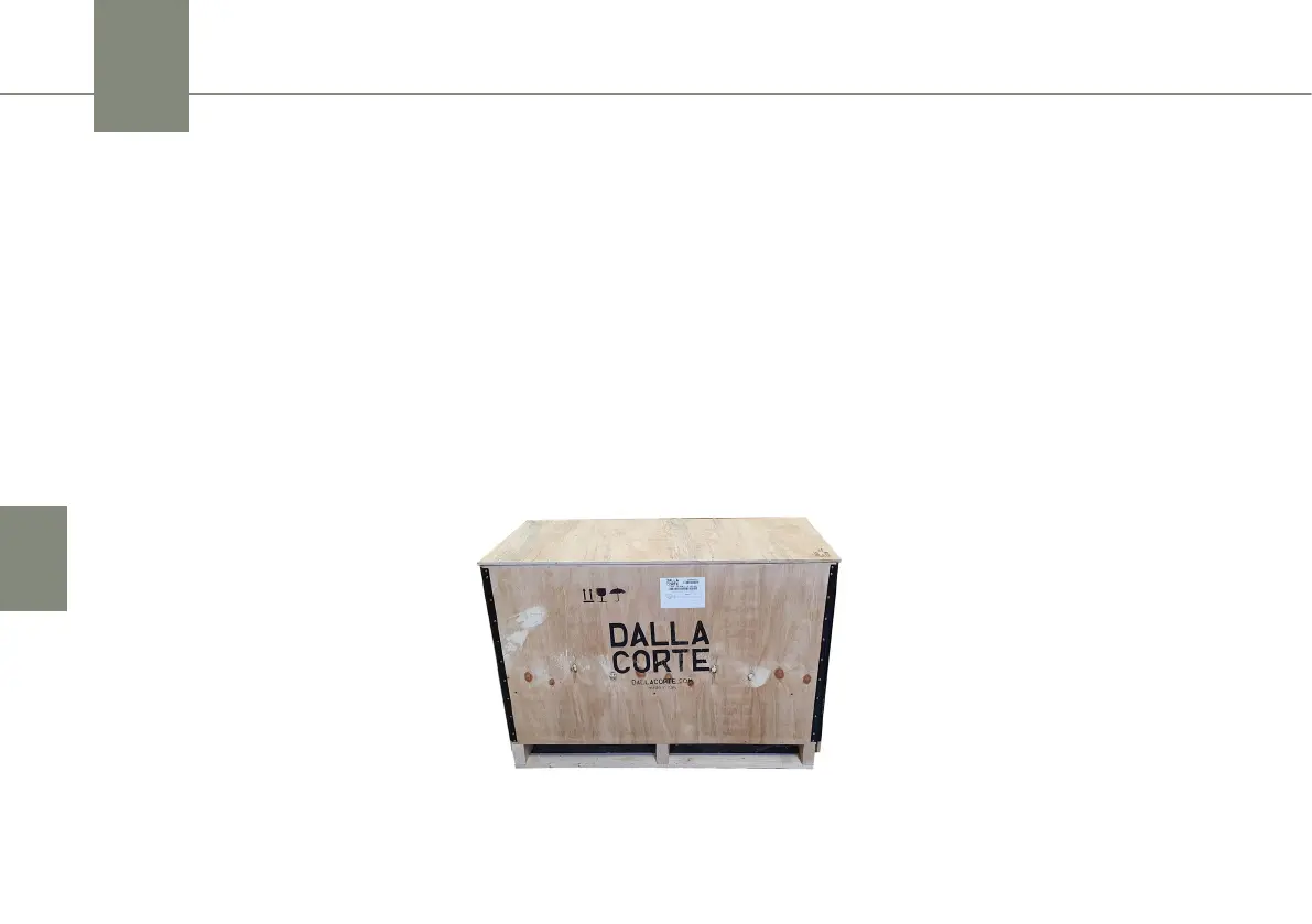 The machine is transported in wooden crates placed on a pallet. During transport, make sure that the crate is always in the correct