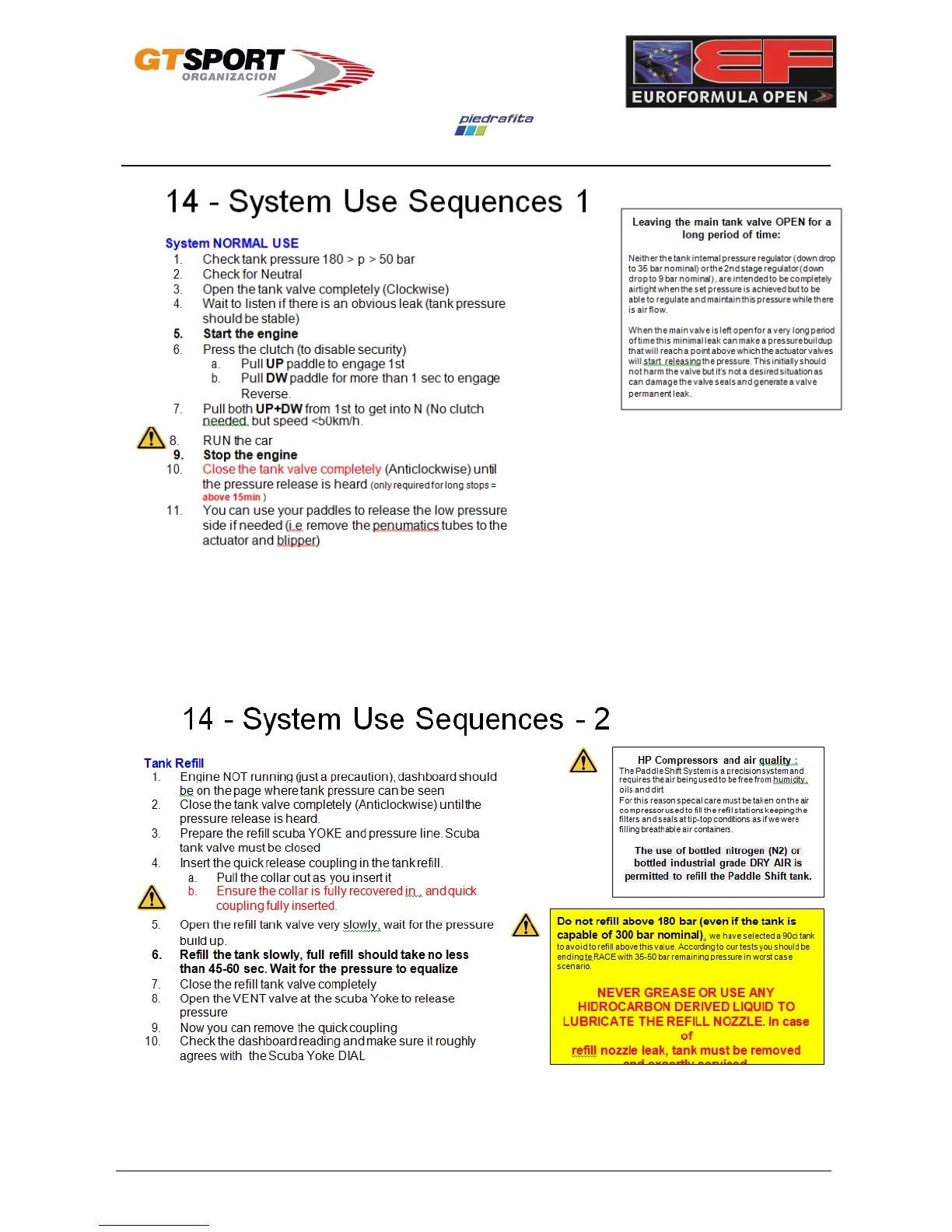 dallara F-312 - 14 - System Use Sequences 1; System Normal Use; 14 - System Use Sequences - 2; Tank Refill