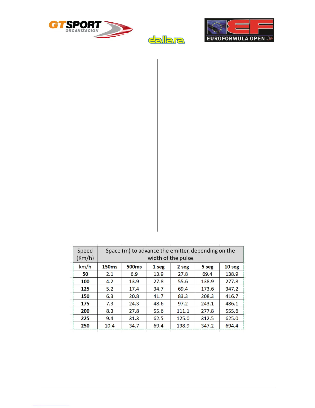 ID30=150 ms de MyLaps. Se adjunta tabla indicativa