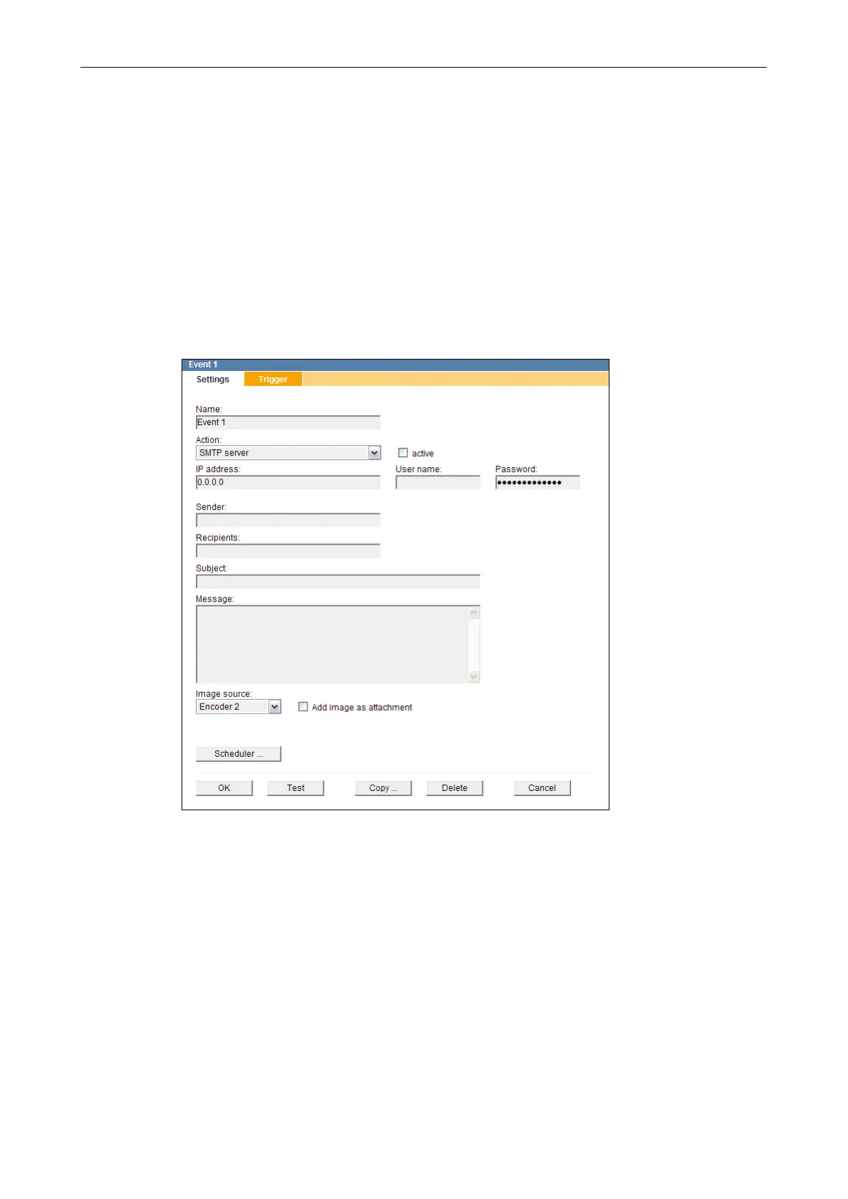 When using this action type, the alarm/event messages are sent as e-mails via SMTP