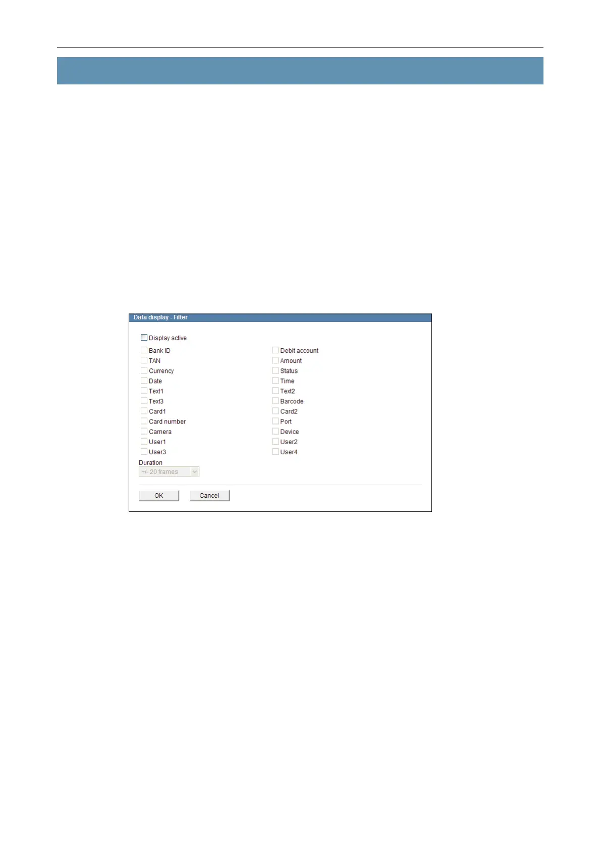 Open the Data display - Filter dialogue via Interfaces > Data display > Filter ....