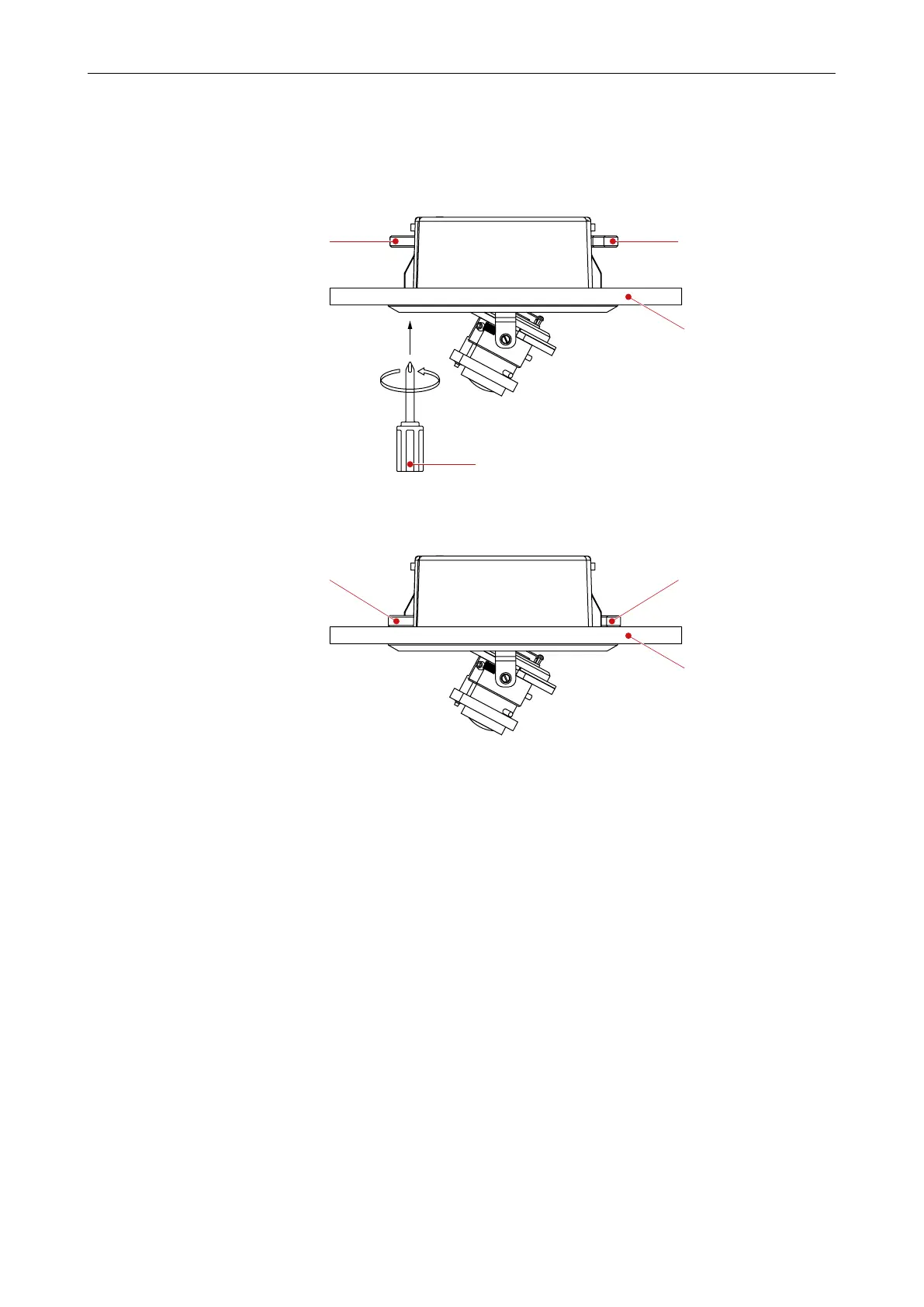 Tighten the M4 locking screw (Fig. 5-4) of both ceiling clamps with a Phillips screw-