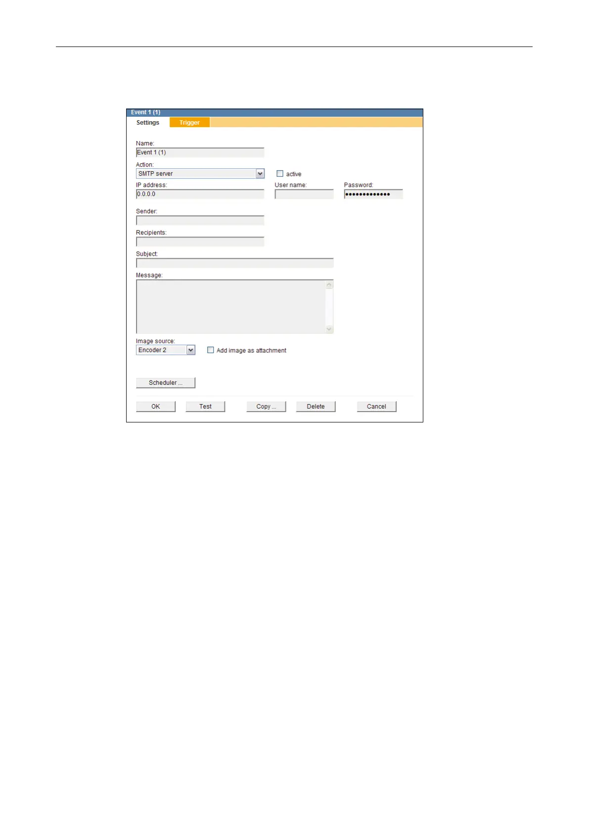 The conguration menu is expanded with the name of the copied event handler with the