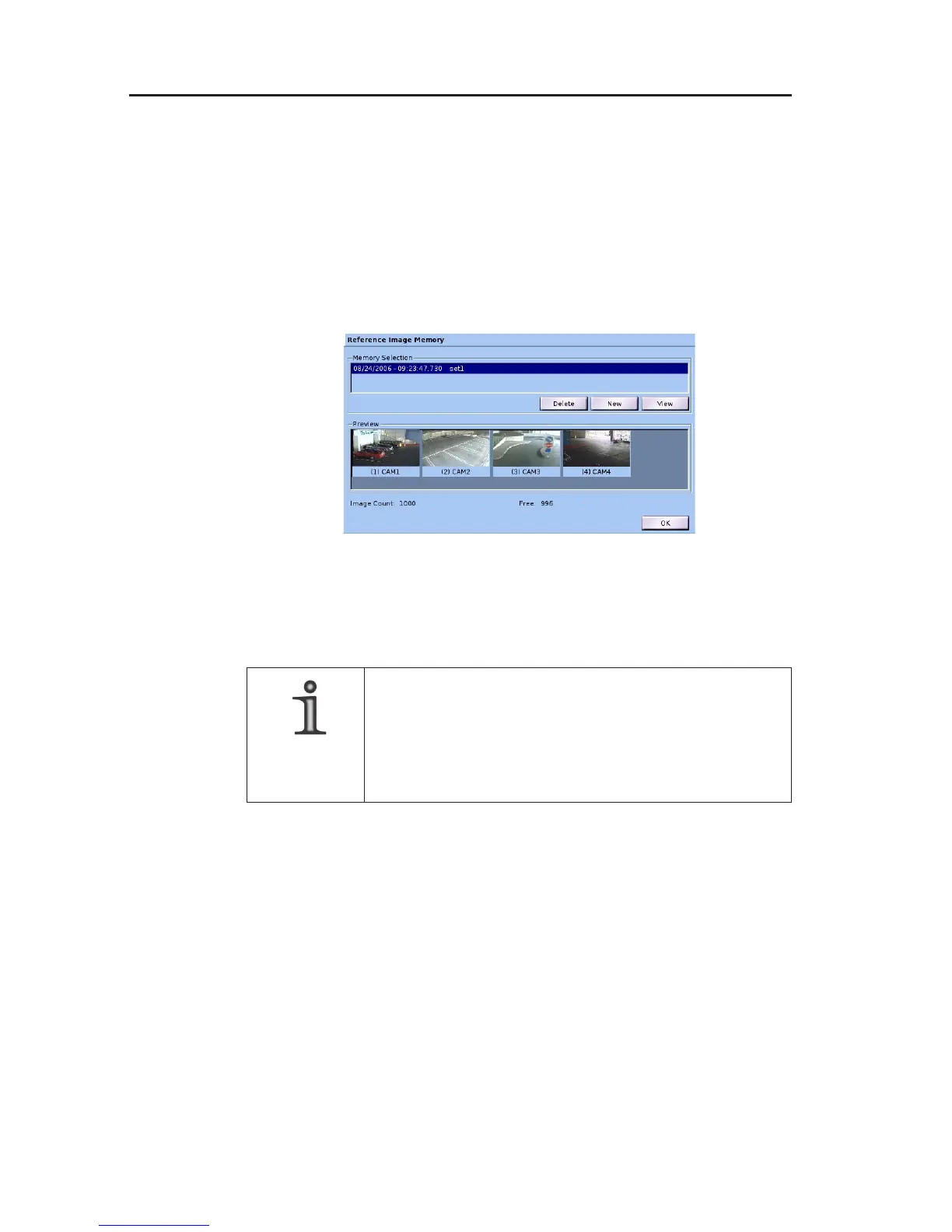 Open the Reference Image Memory dialog for comparison of a