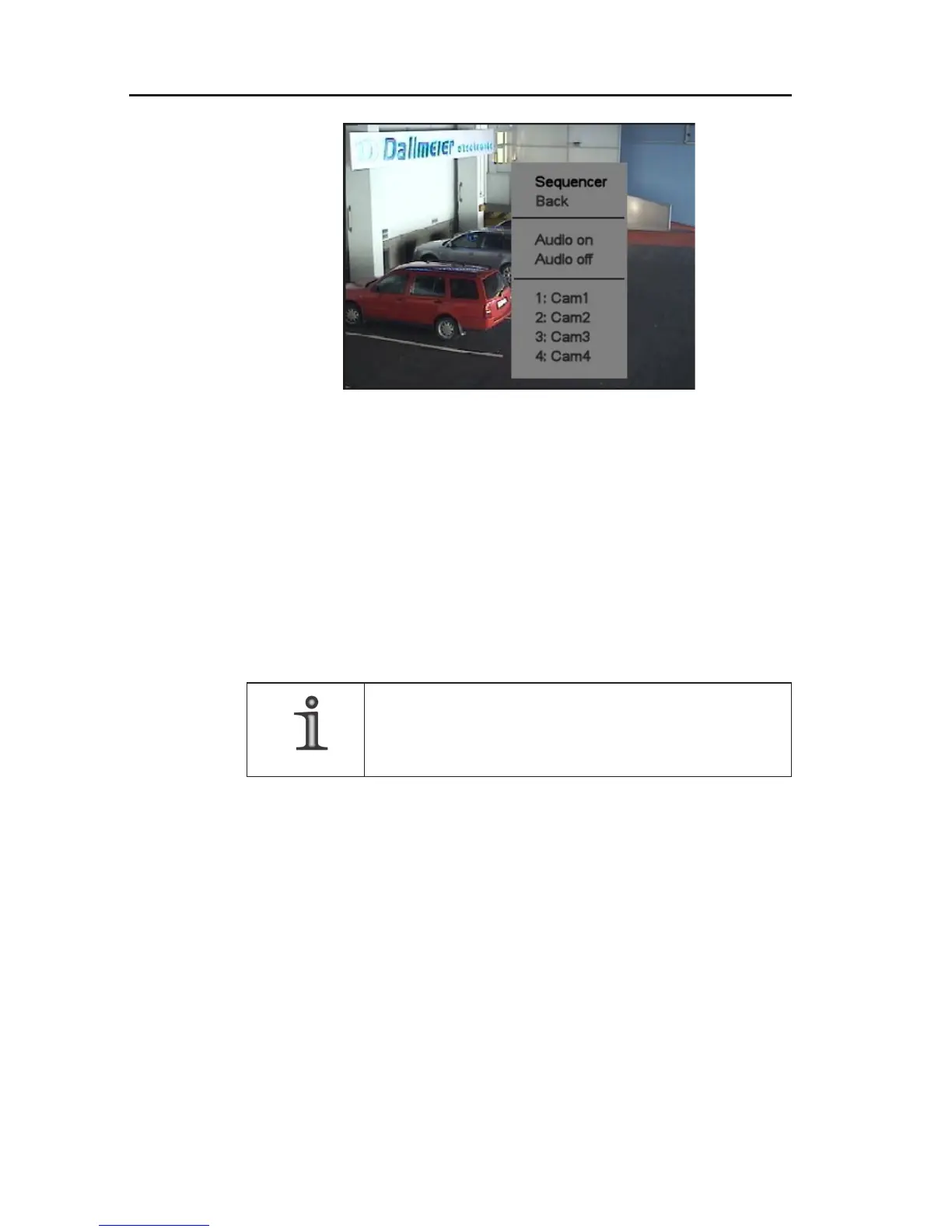 corresponding menu entry. The camera will be shown in the single