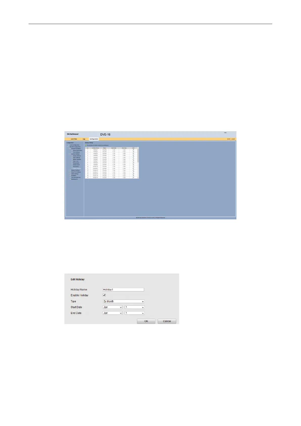 Open the Holiday Settings dialog via Remote Conguration > Camera Settings >