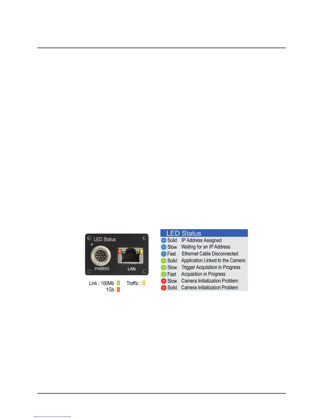 The Genie has one multicolor LED to provide a simple visible indication of camera state (see figure below and