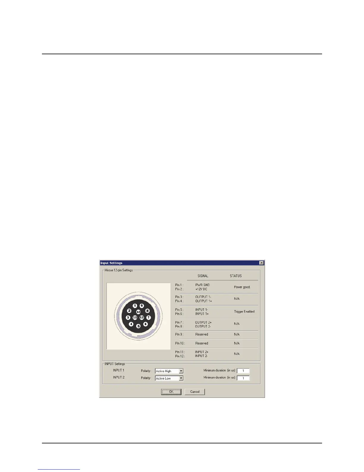 you to view the signal and status for each pin on the Hirose connector. The Polarity drop-down list boxes, located