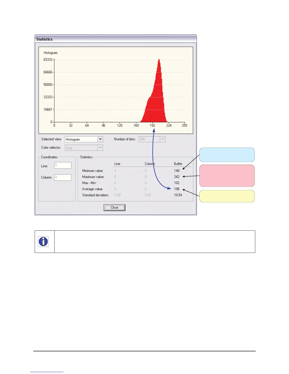 Important: In this example, the average pixel value for the frame is bright gray. Also note that sensors may show