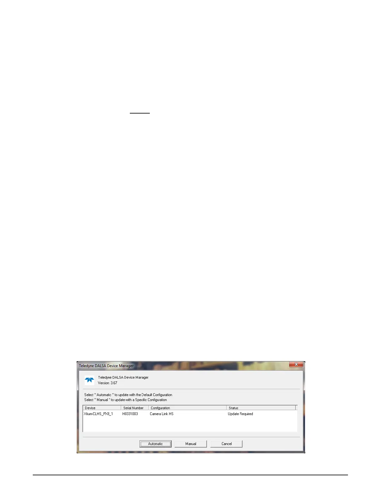 Click Automatic to update the Xtium-CLHS PX8 firmware. The Xtium-CLHS PX8 currently