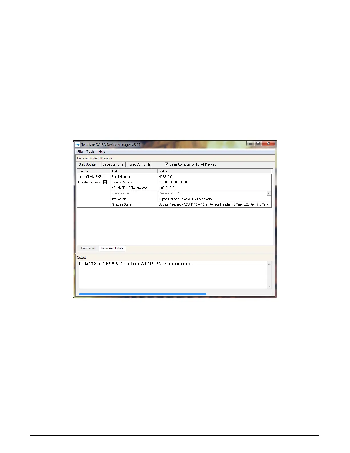 shortcut Start • Programs • Teledyne DALSA • Xtium-CLHS PX8 Driver • Firmware