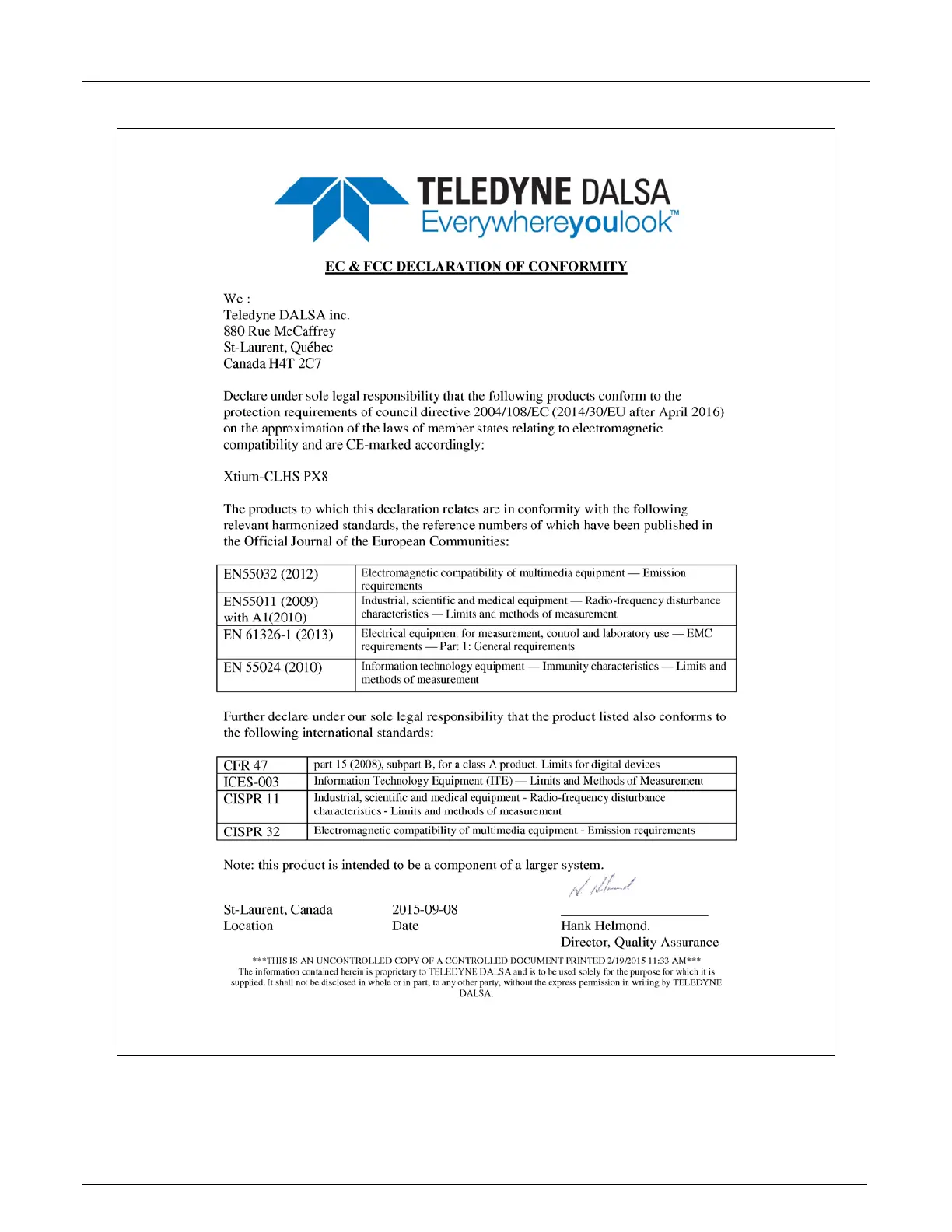 Dalsa Xtium-CLHS PX8 - Emi Certifications; Figure 19: EMI Certifications