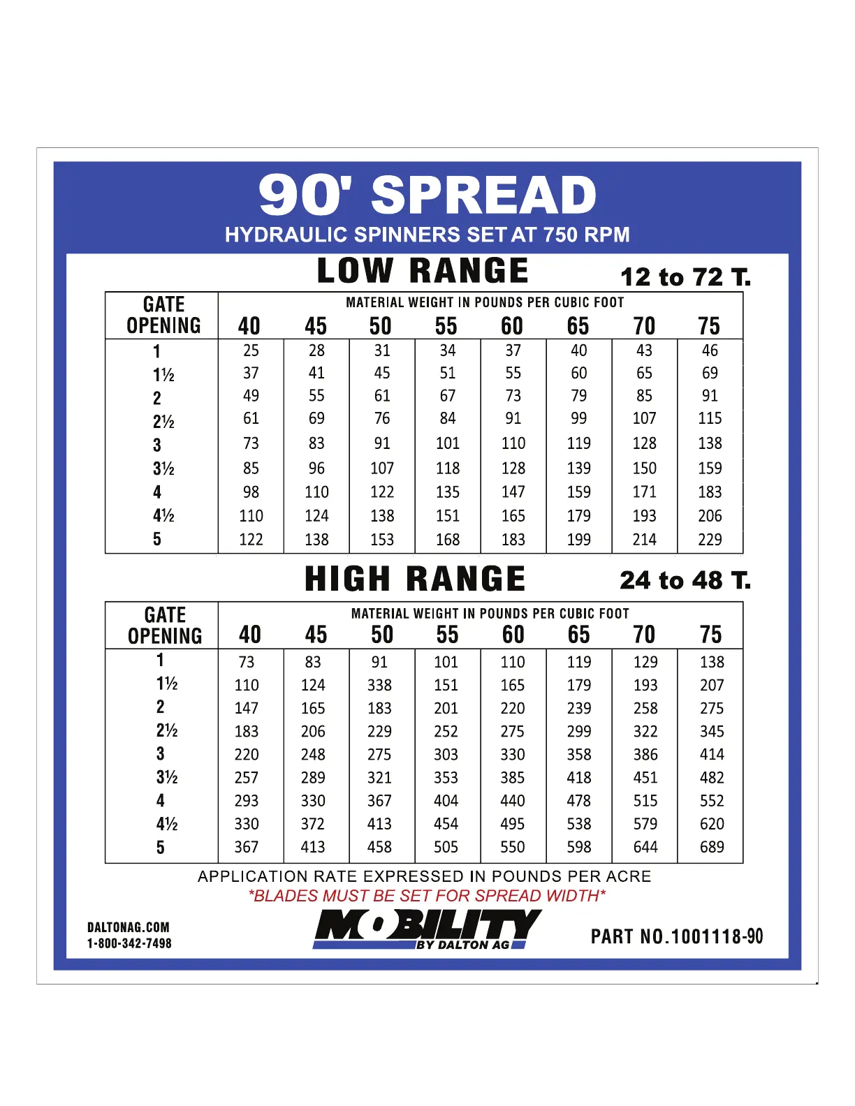 Dalton MOBILITY 800 - 90 Foot Spread Application Charts