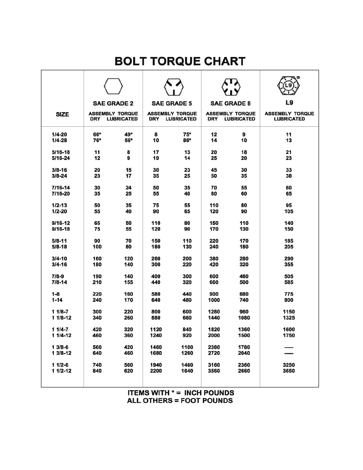 Dalton MOBILITY 800 - Bolt Torque Chart