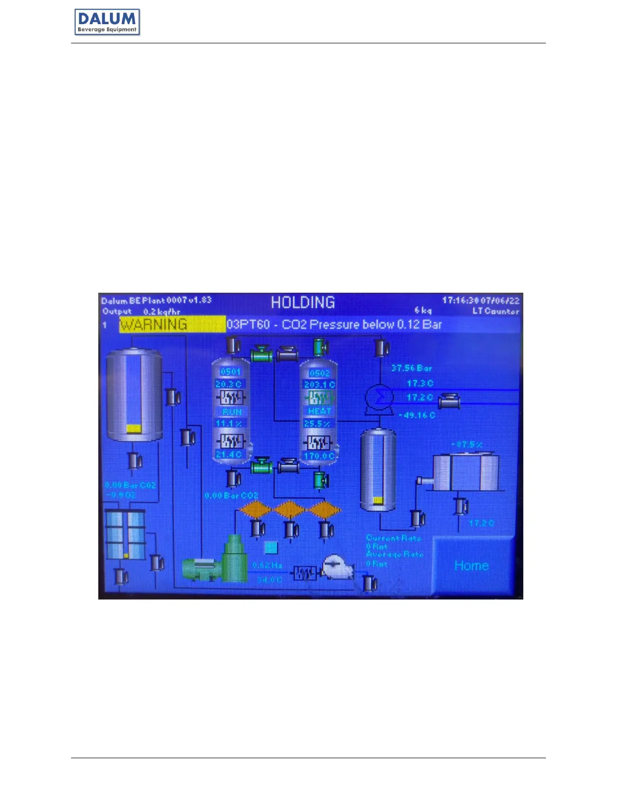 see the machine state, alarm information, production in kg/hr and you have buttons to control