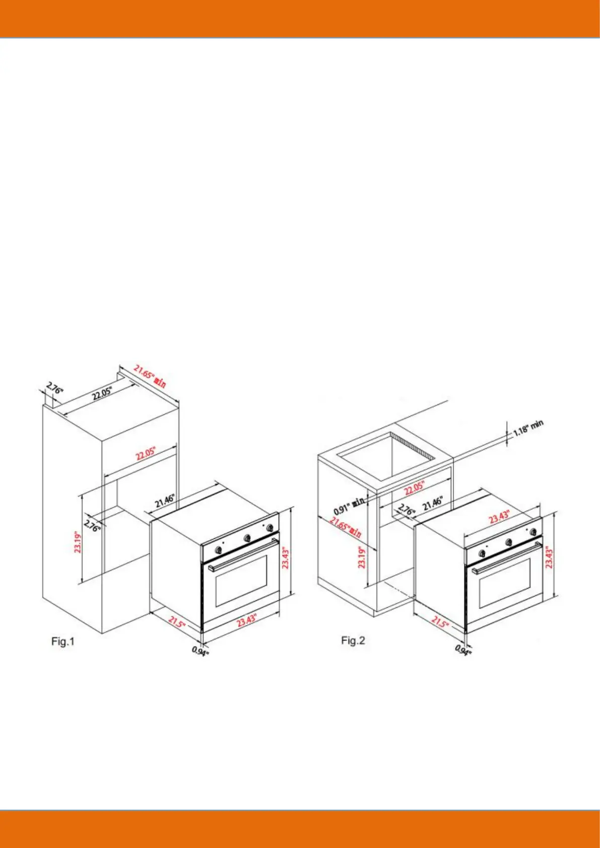provided with the other appliance. For efficient air circulation, the oven should be installed