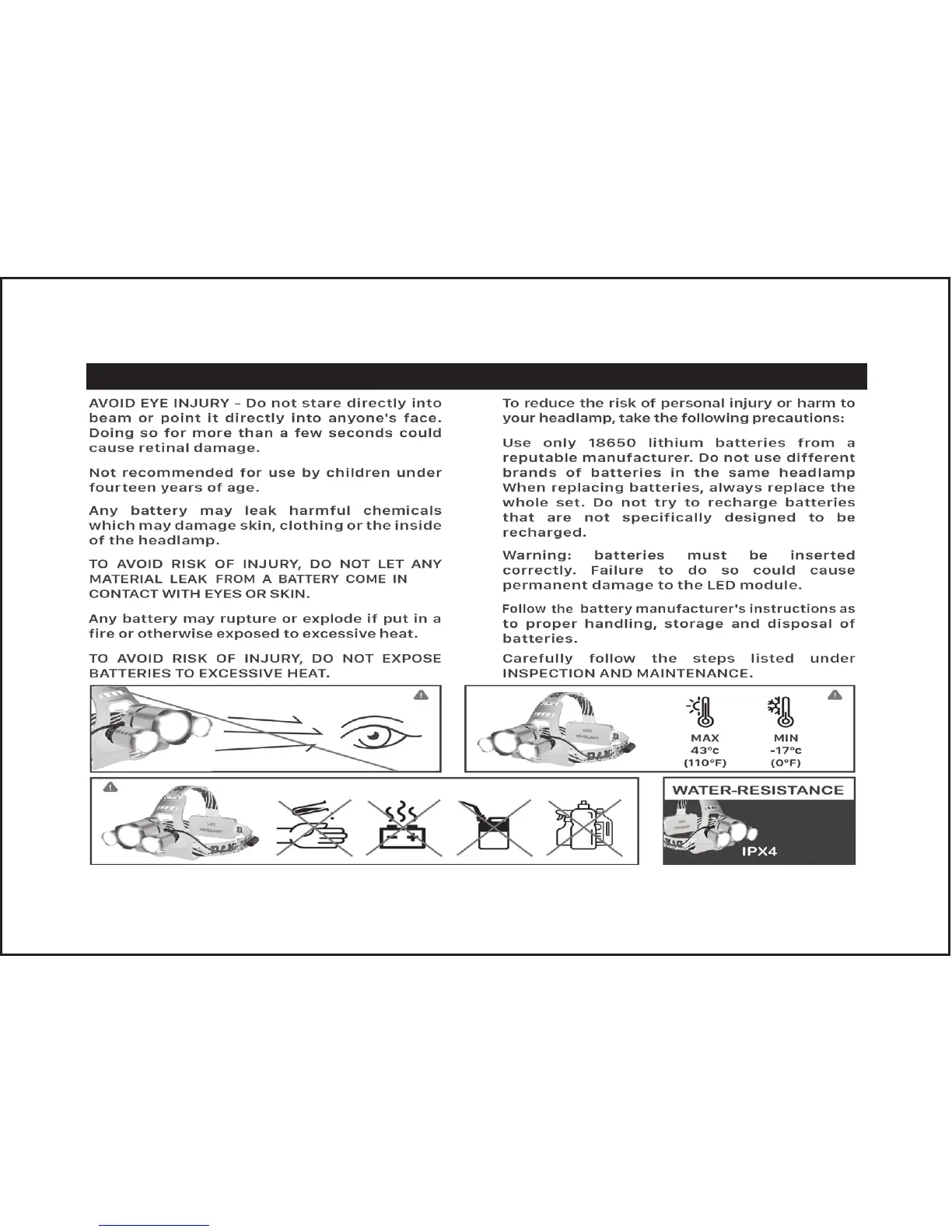 Dan Force BOLD-S HEADLAMP - Safety Warnings; Important Safety Precautions