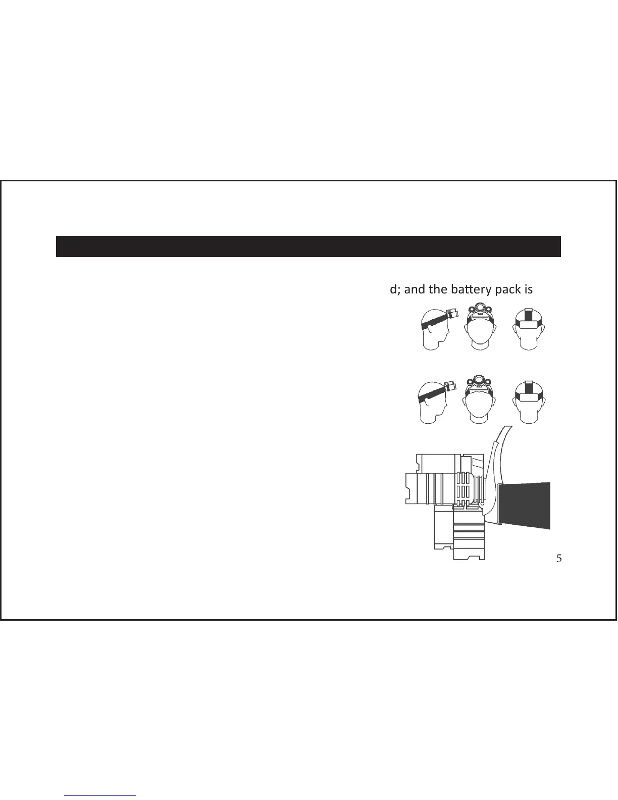 so that the headlamp unit is centered on your forehead; and the baery pack is