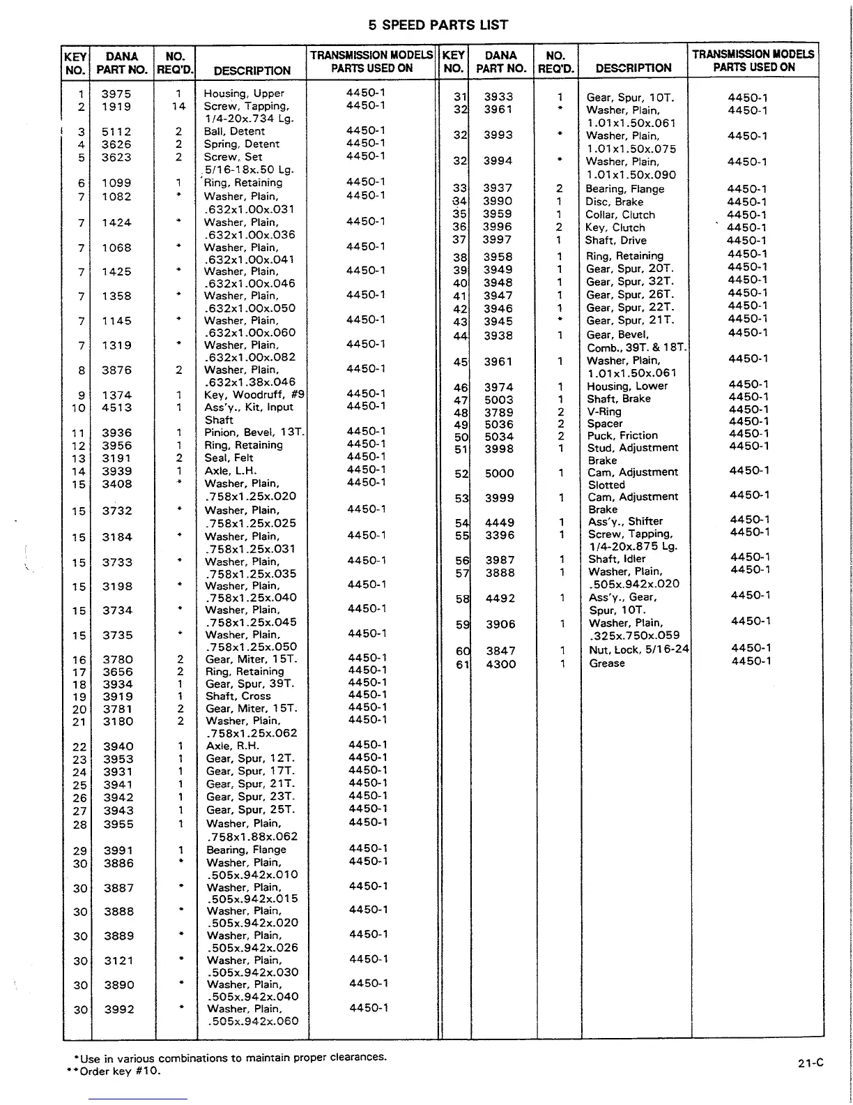 DANA 4450-1 - 5 Speed Parts List; Component Identification