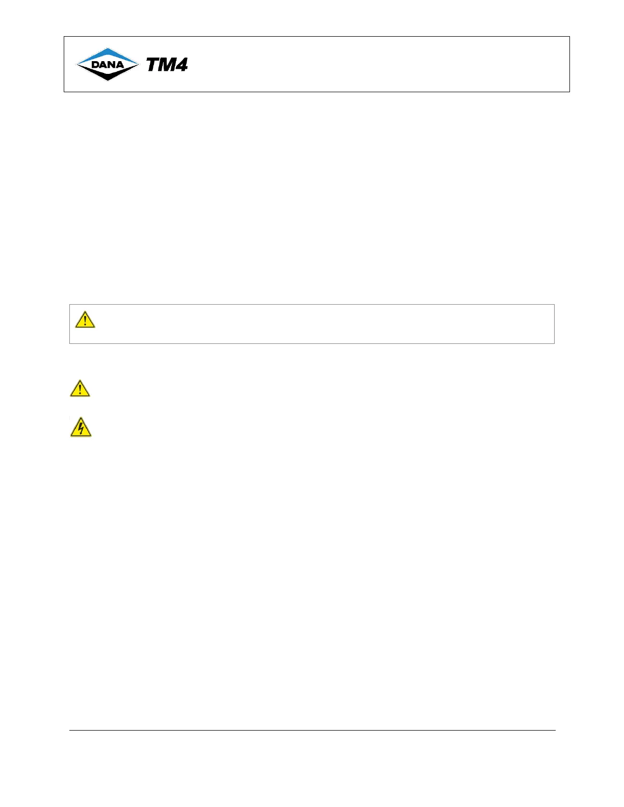 All installation instructions, limits and warnings given in the technical documentation supplied by Dana TM4