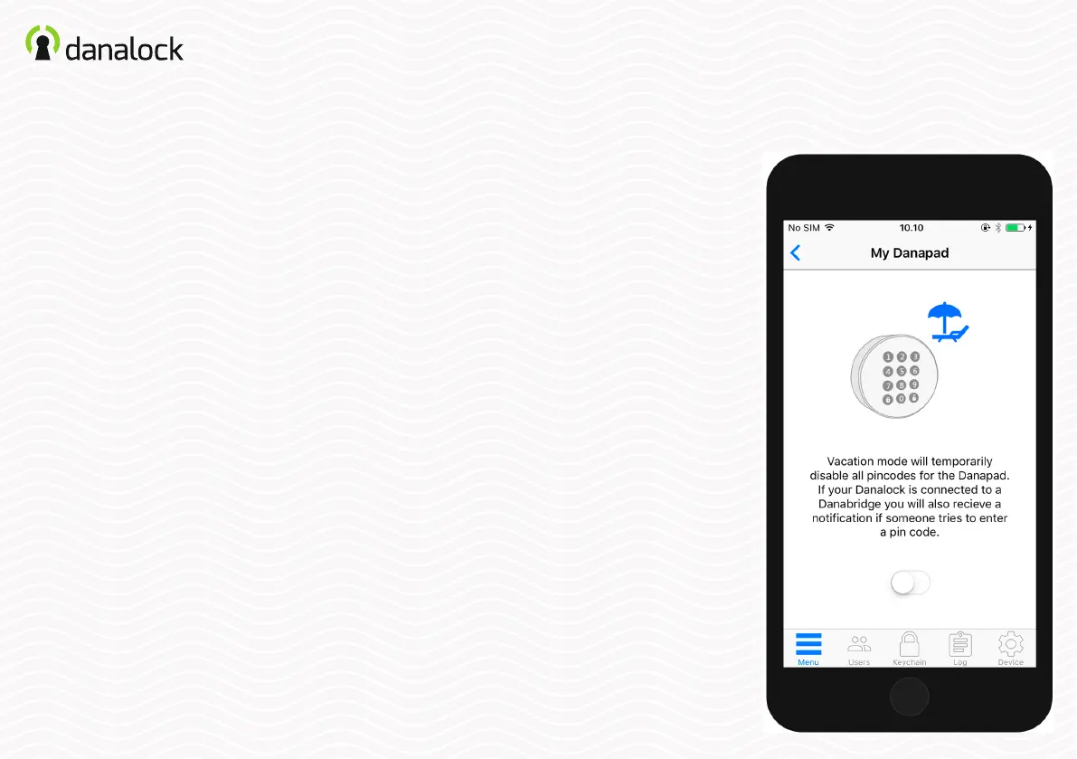 codes for the Danapad V3 while it is turned on. Press VACATION