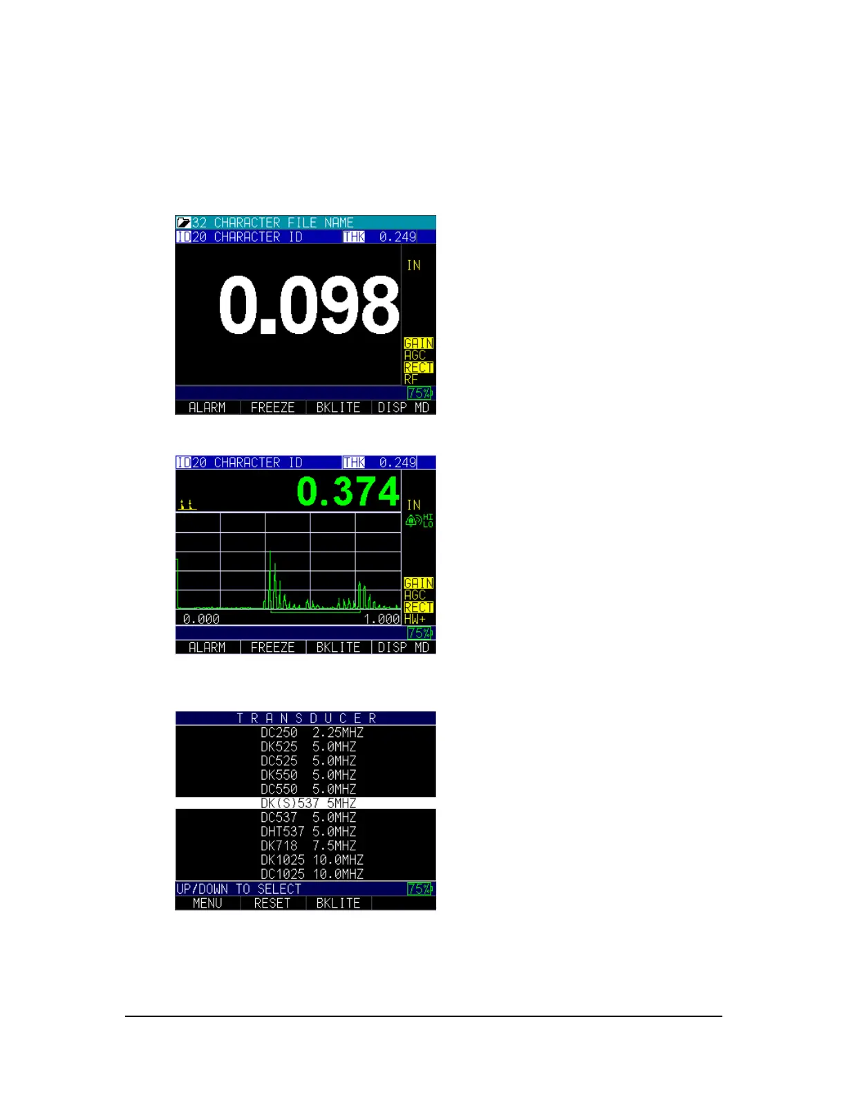 Color Waveform in Echo-to-Echo mode, filename, ID, thickness value,