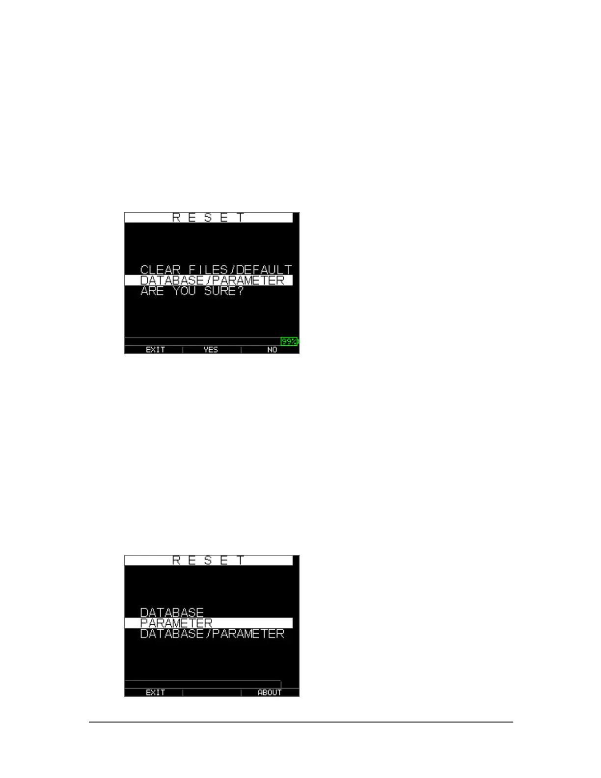 1. From the Home screen, press the F1 – Reset key. The Reset screen appears.