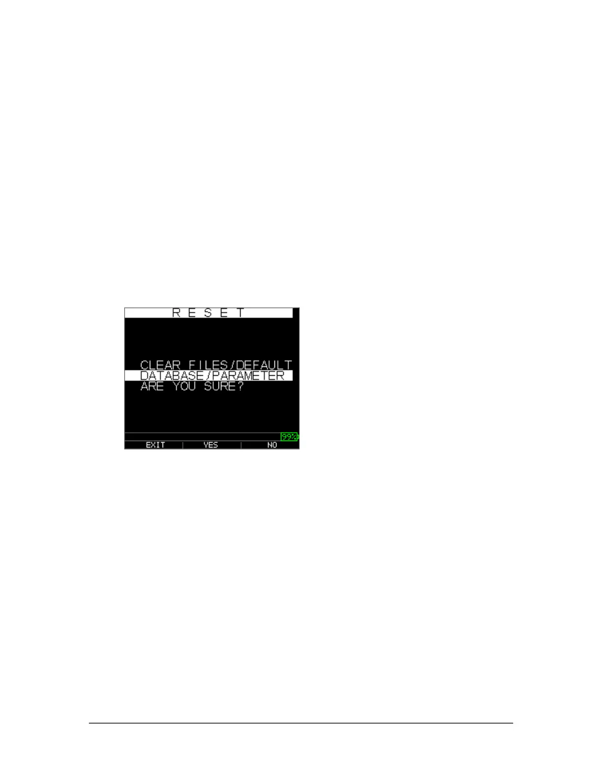 3. Press the F2 – Yes key to perform a Database/Parameter reset.