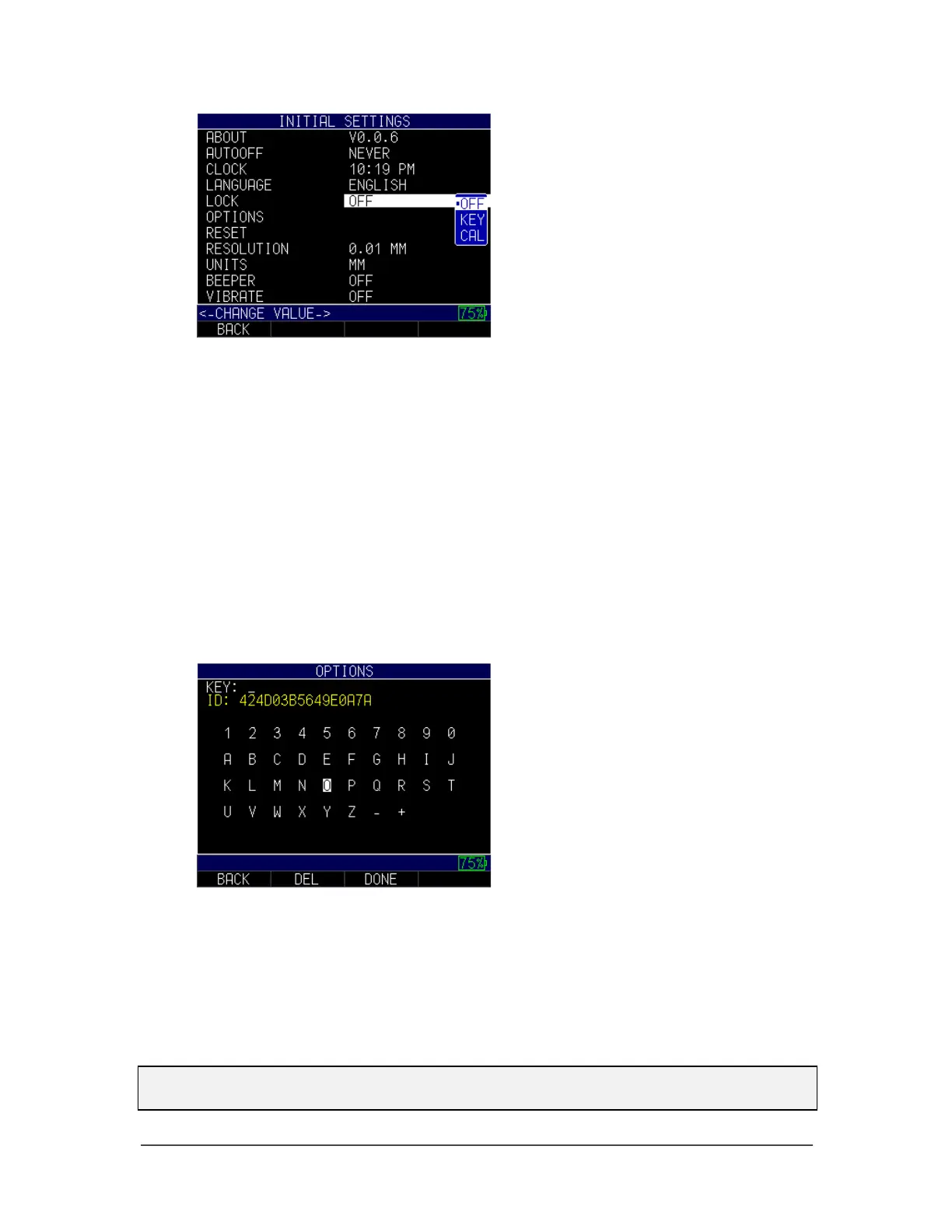 • Cal: Calibration keys and values cannot be modified.