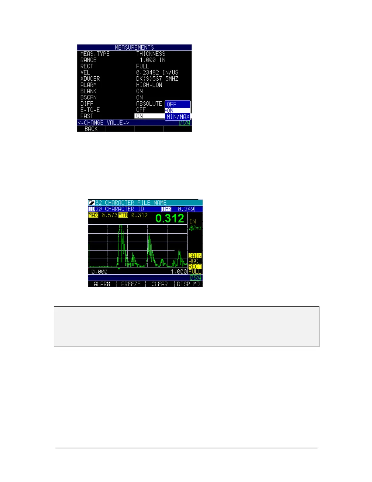 • Min/Max: The LOS will display the LAST MAX measured value or the LAST